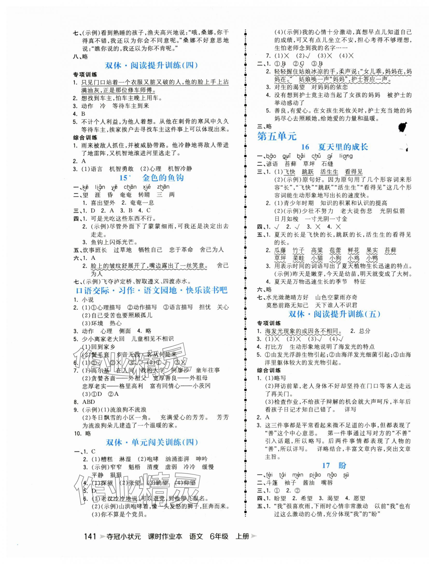 注:目前有些书本章节名称可能整理的还不是很完善,但都是按照顺序排列的,请同学们按照顺序仔细查找。练习册 2025年夺冠小状元课时作业本六年级语文上册人教版 答案主要是用来给同学们做完题方便对答案用的,请勿直接抄袭。