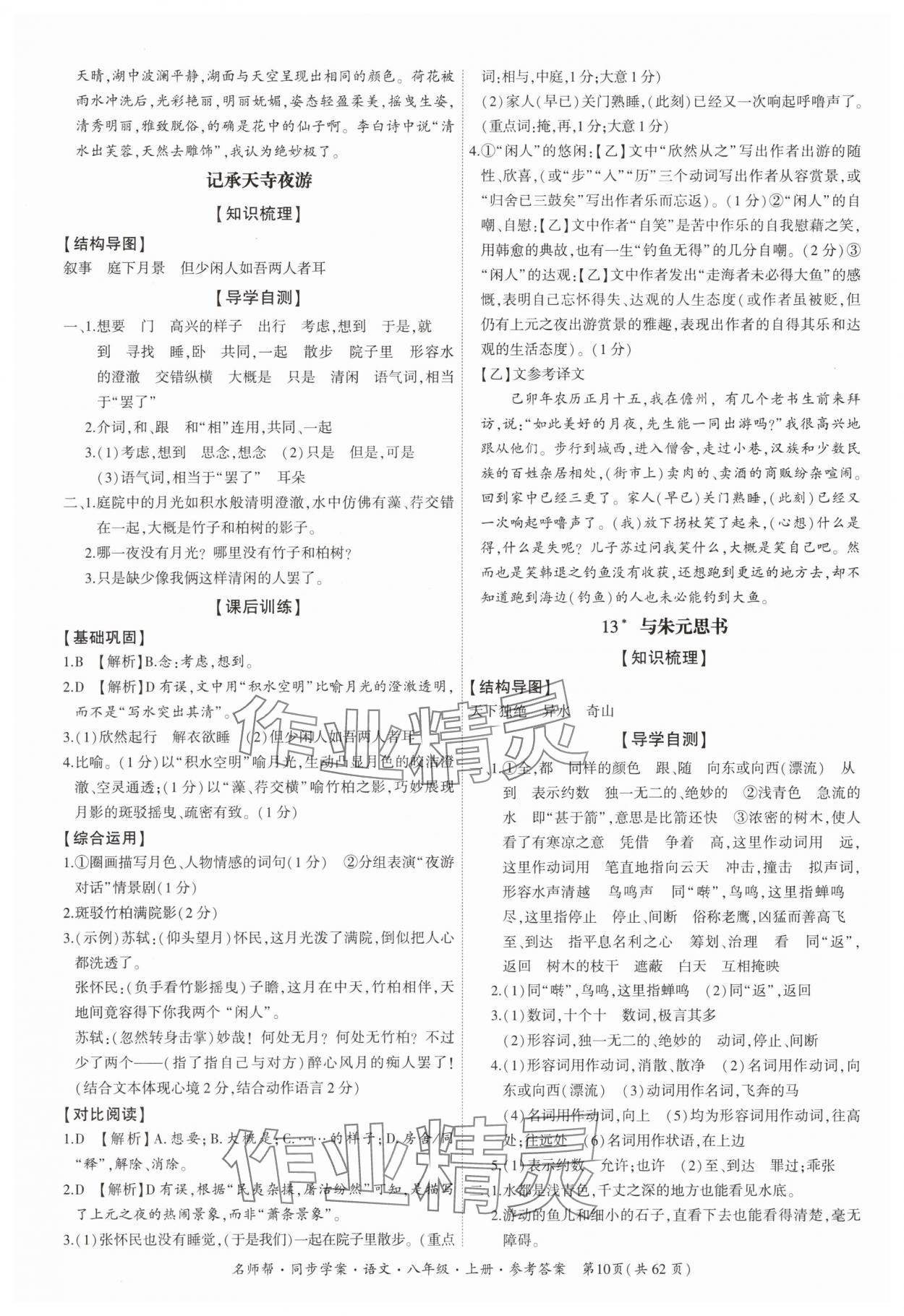 2025年名师帮同步学案八年级语文上册人教版 参考答案第10页