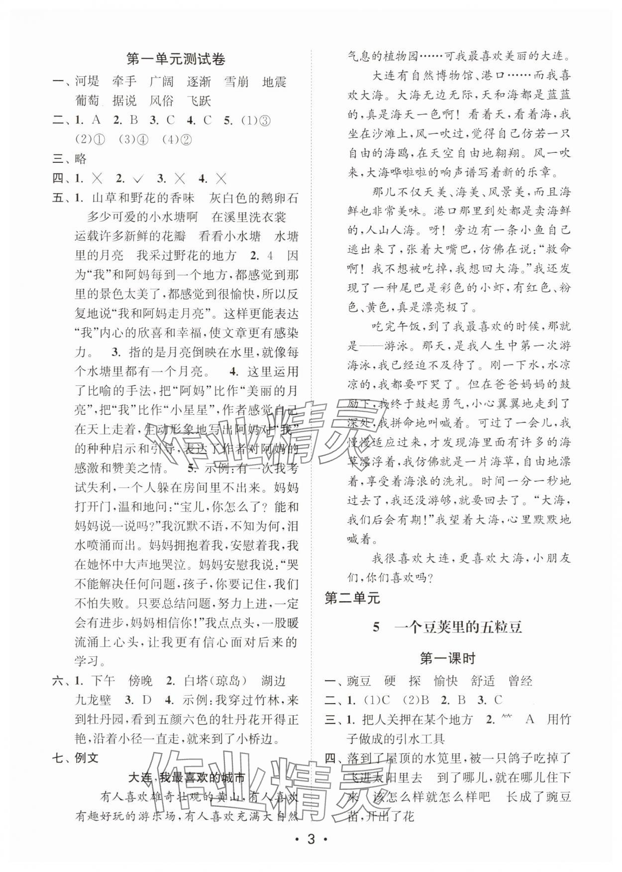 精英家教网> 2025年创新课时作业本四年级语文上册人教版 > 第3页 参考答案