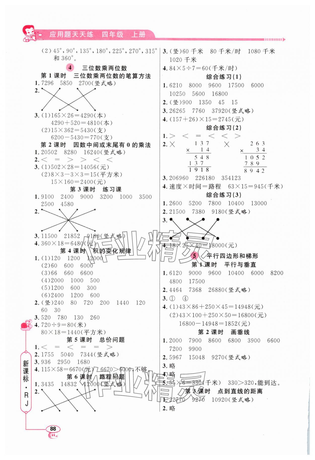 2025年应用题天天练四年级上册人教版山东画报出版社