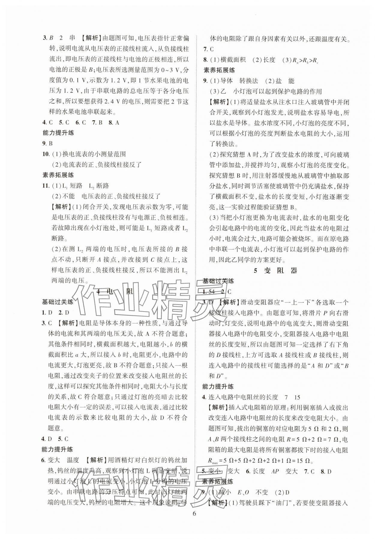 2025年一课一练创新练习九年级物理教科版 参考答案第6页