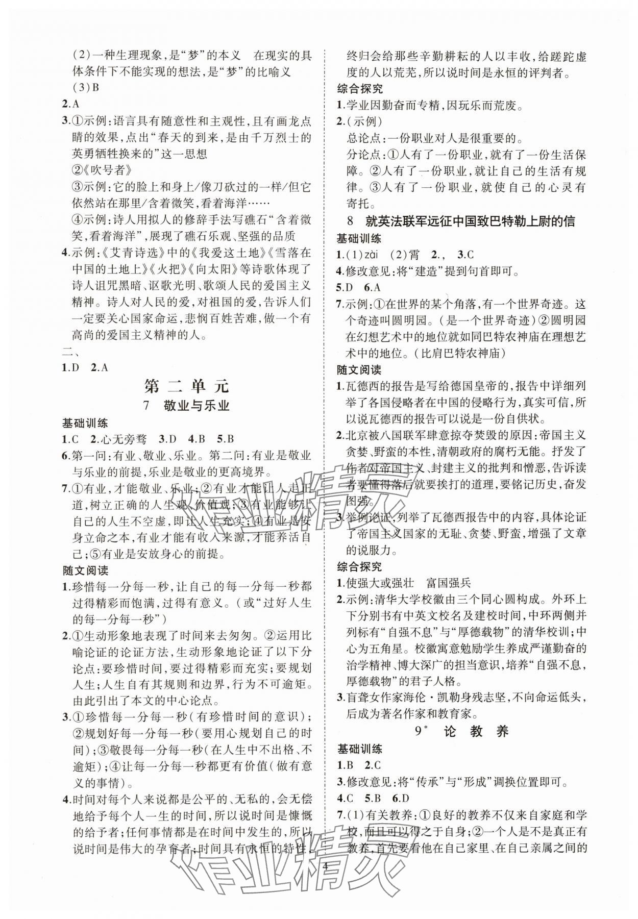 2025年一课一练创新练习九年级语文人教版 参考答案第4页