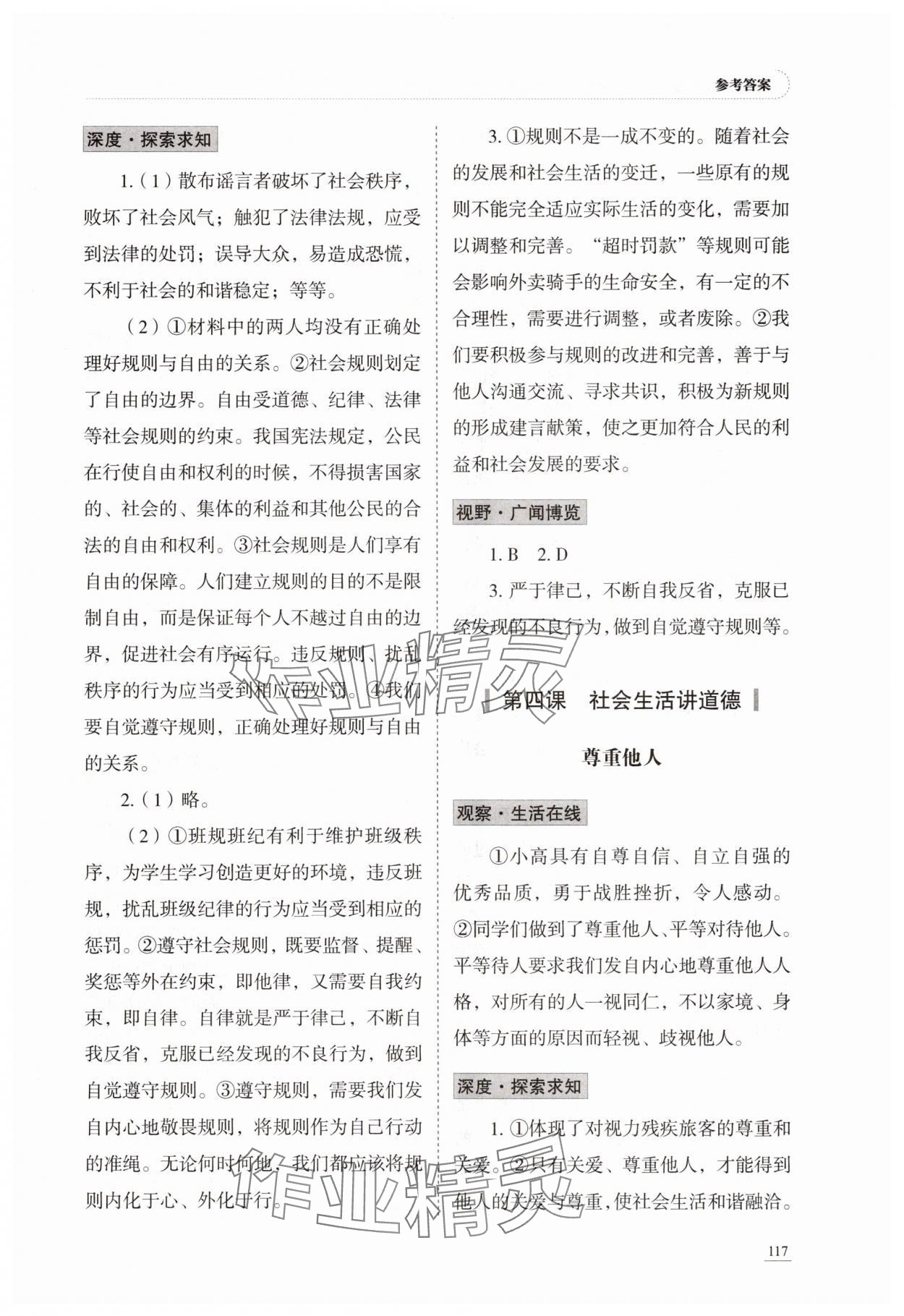 2025年初中道德与法治学习实践手册八年级上册人教版五四制 参考答案第6页