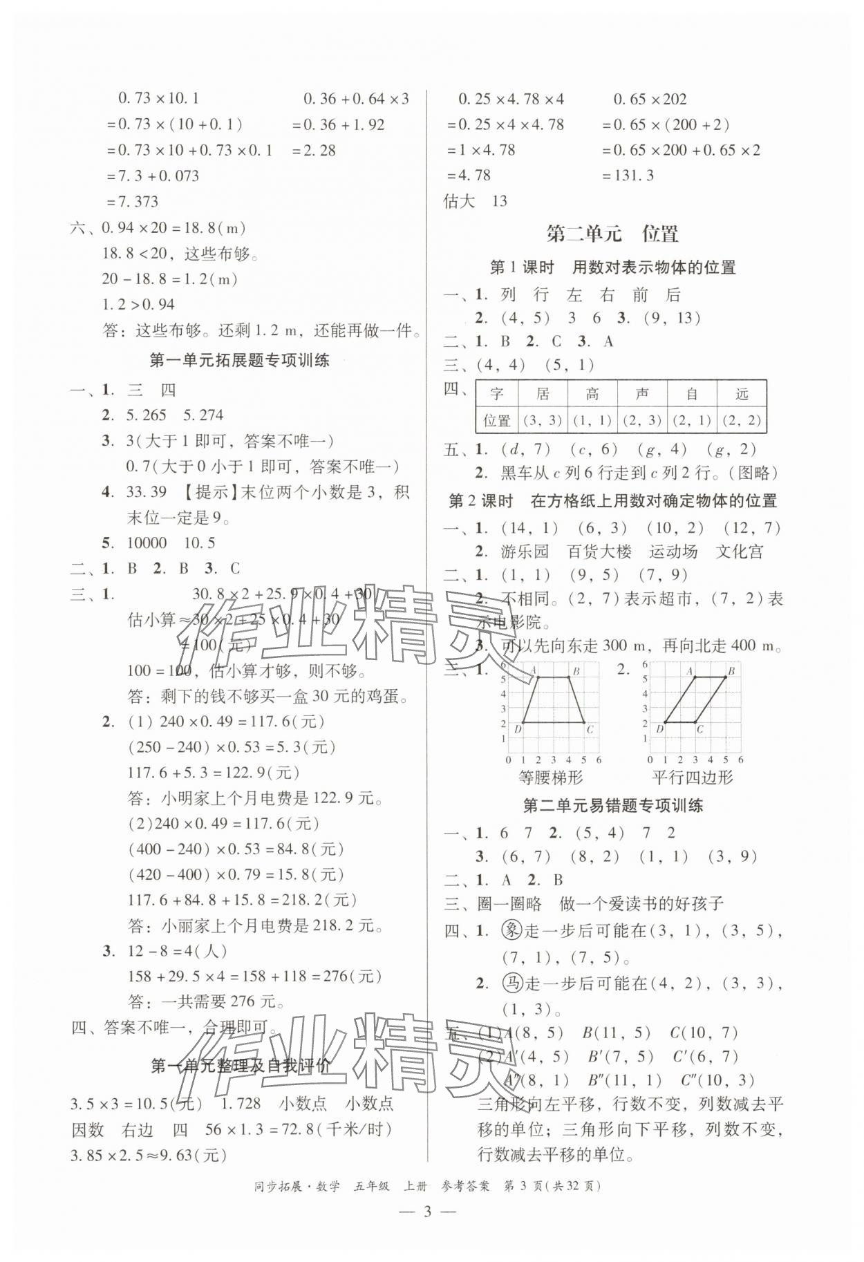 精英家教网> 2025年同步拓展五年级数学上册人教版 > 第3页 参考答案