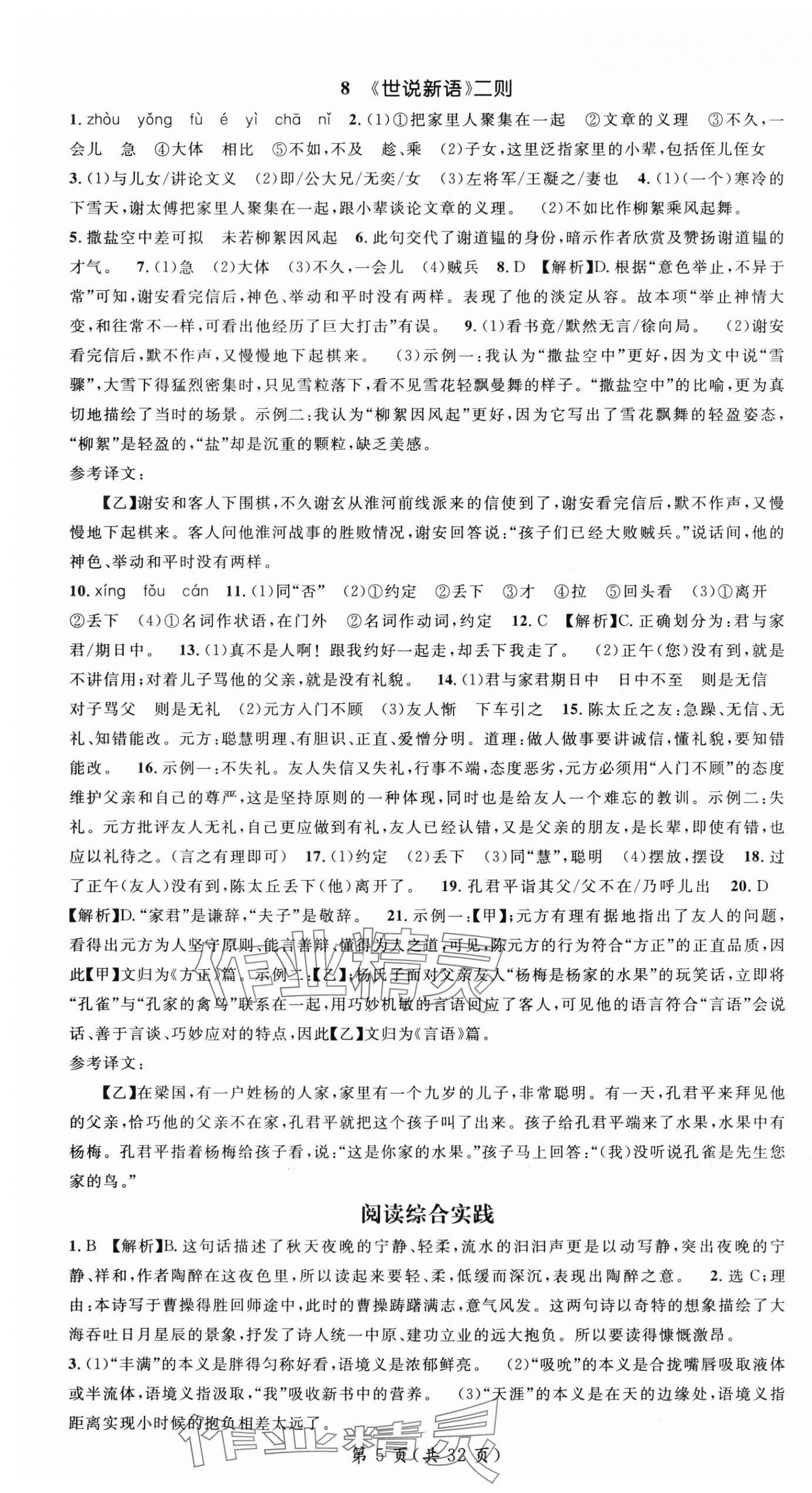 精英家教网> 2025年名师测控七年级语文上册人教版湖北专版 > 第5页 参考答案