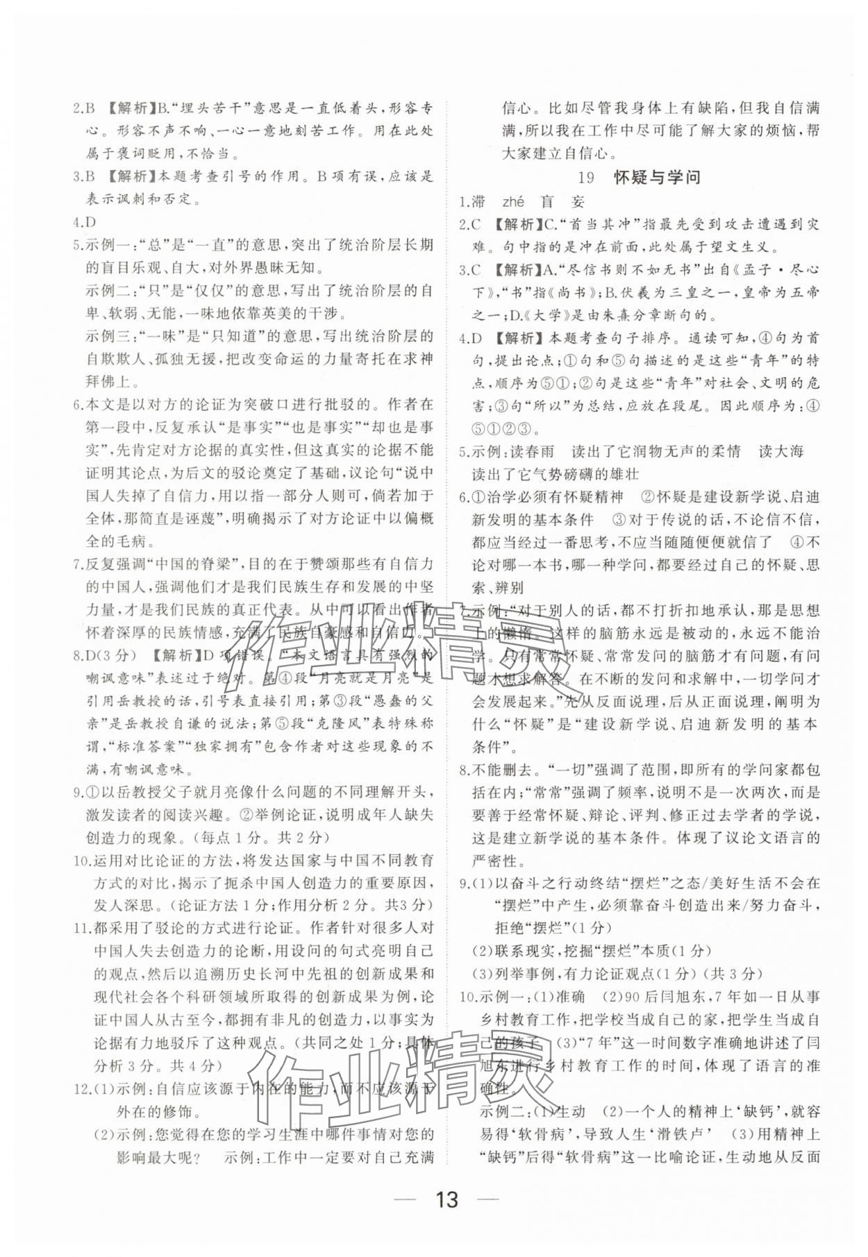 注:目前有些书本章节名称可能整理的还不是很完善,但都是按照顺序排列的,请同学们按照顺序仔细查找。练习册 2025年我的作业九年级语文上册人教版河南专版 答案主要是用来给同学们做完题方便对答案用的,请勿直接抄袭。