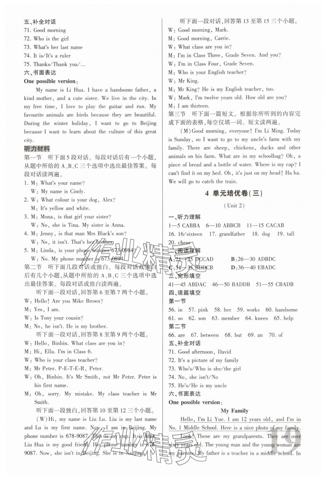 注:目前有些书本章节名称可能整理的还不是很完善,但都是按照顺序排列的,请同学们按照顺序仔细查找。练习册 2025年考点梳理单元金卷七年级英语上册人教版 答案主要是用来给同学们做完题方便对答案用的,请勿直接抄袭。