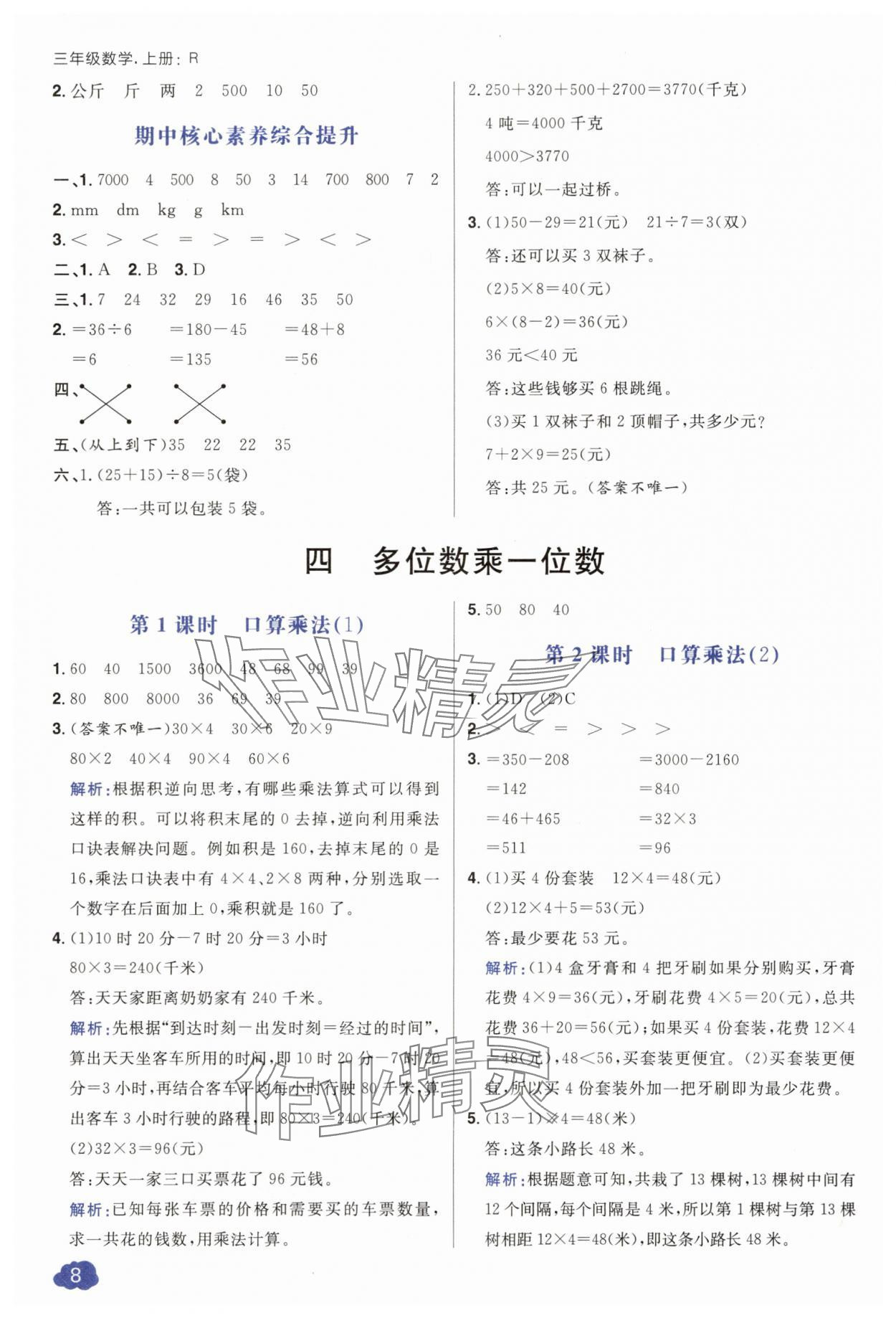 注:目前有些书本章节名称可能整理的还不是很完善,但都是按照顺序排列的,请同学们按照顺序仔细查找。练习册 2025年核心素养天天练三年级数学上册人教版 答案主要是用来给同学们做完题方便对答案用的,请勿直接抄袭。