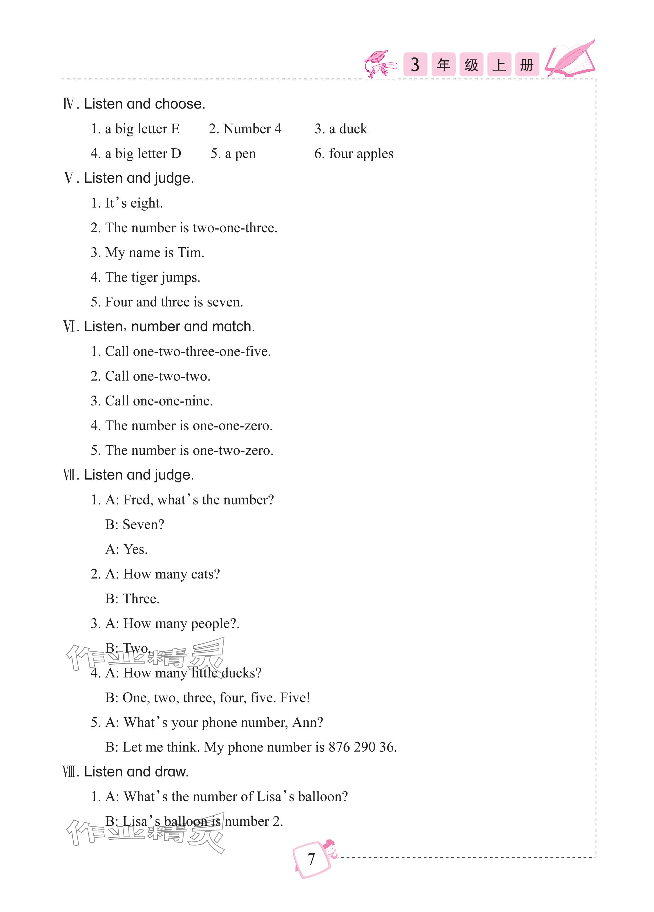 注:目前有些书本章节名称可能整理的还不是很完善,但都是按照顺序排列的,请同学们按照顺序仔细查找。练习册 2025年小学英语听力训练武汉出版社三年级英语上册剑桥版 答案主要是用来给同学们做完题方便对答案用的,请勿直接抄袭。