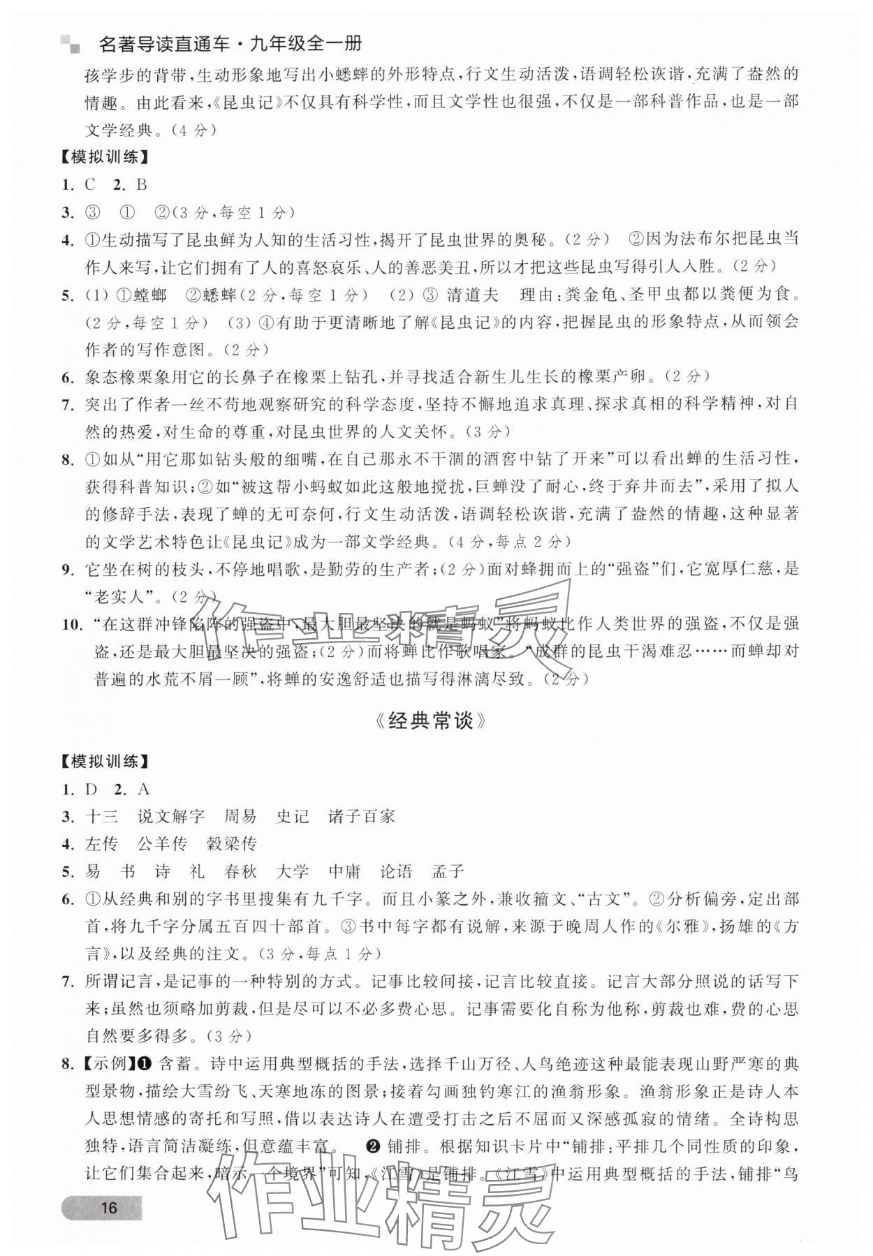 注:目前有些书本章节名称可能整理的还不是很完善,但都是按照顺序排列的,请同学们按照顺序仔细查找。练习册 2025年名著导读直通车九年级语文全一册人教版 答案主要是用来给同学们做完题方便对答案用的,请勿直接抄袭。