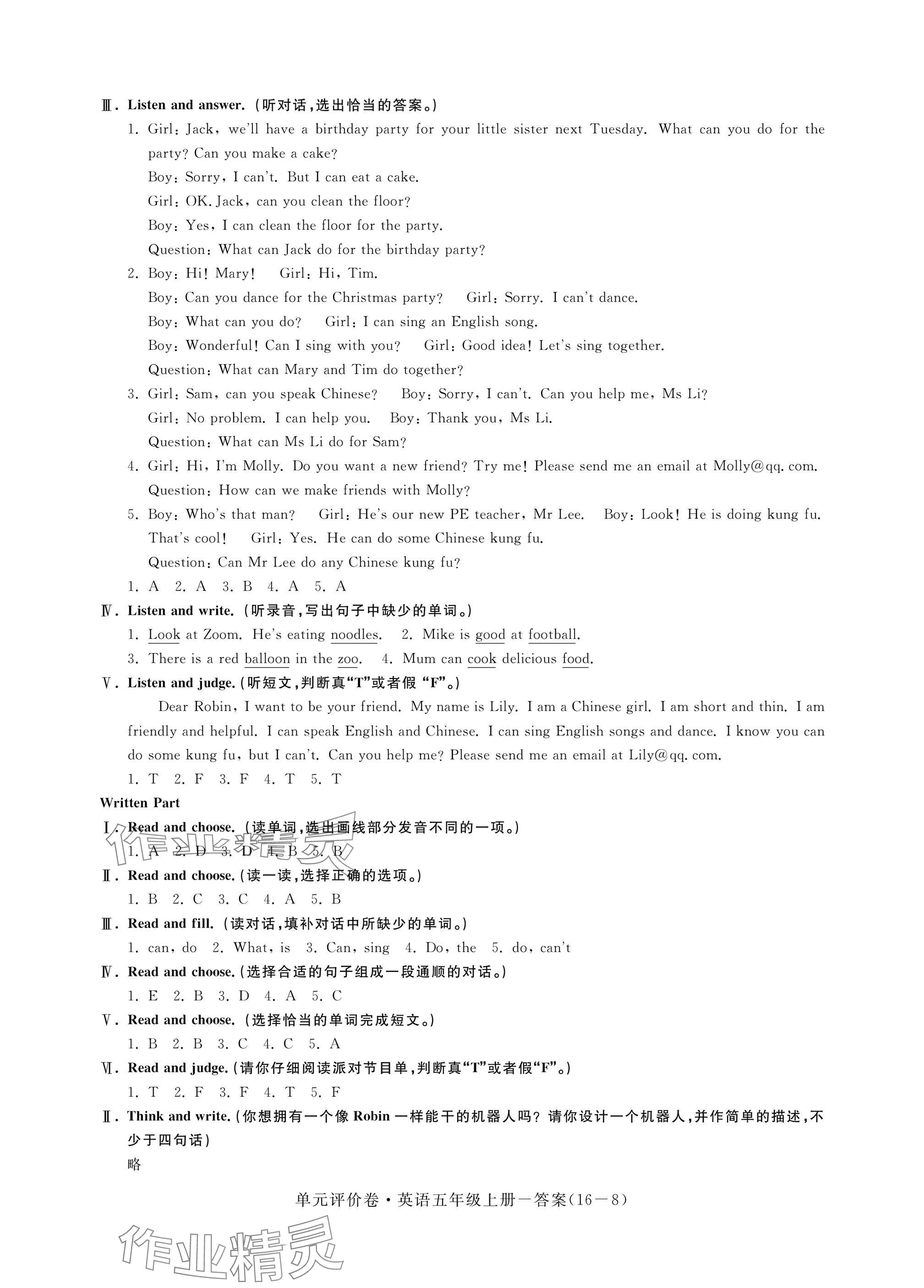 注:目前有些书本章节名称可能整理的还不是很完善,但都是按照顺序排列的,请同学们按照顺序仔细查找。练习册 2025年单元评价卷宁波出版社五年级英语上册人教版 答案主要是用来给同学们做完题方便对答案用的,请勿直接抄袭。