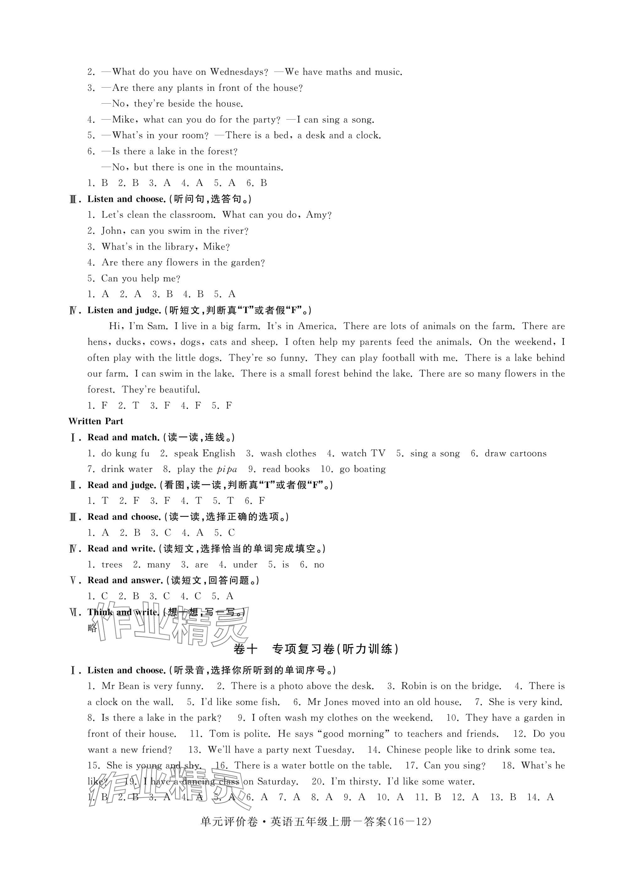 注:目前有些书本章节名称可能整理的还不是很完善,但都是按照顺序排列的,请同学们按照顺序仔细查找。练习册 2025年单元评价卷宁波出版社五年级英语上册人教版 答案主要是用来给同学们做完题方便对答案用的,请勿直接抄袭。