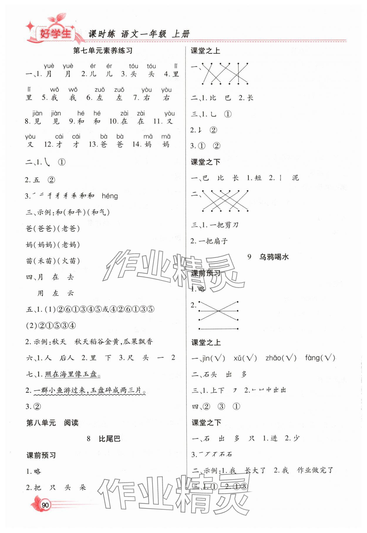 注:目前有些书本章节名称可能整理的还不是很完善,但都是按照顺序排列的,请同学们按照顺序仔细查找。练习册 2025年好学生课时练一年级语文上册人教版 答案主要是用来给同学们做完题方便对答案用的,请勿直接抄袭。