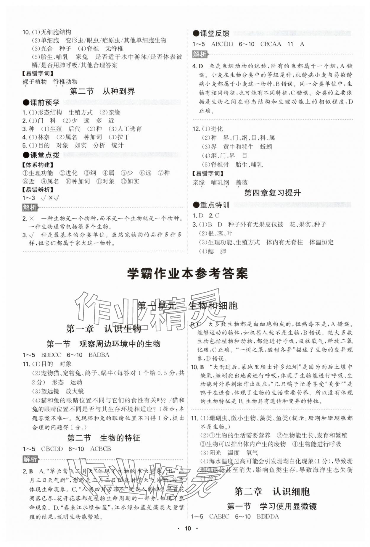 注:目前有些书本章节名称可能整理的还不是很完善,但都是按照顺序排列的,请同学们按照顺序仔细查找。练习册 2025年学霸智慧课堂七年级生物上册人教版 答案主要是用来给同学们做完题方便对答案用的,请勿直接抄袭。