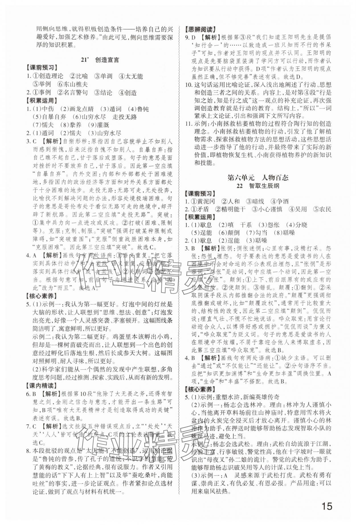 精英家教网> 2025年同步冲刺九年级语文全一册人教版 > 第15页 参考答案