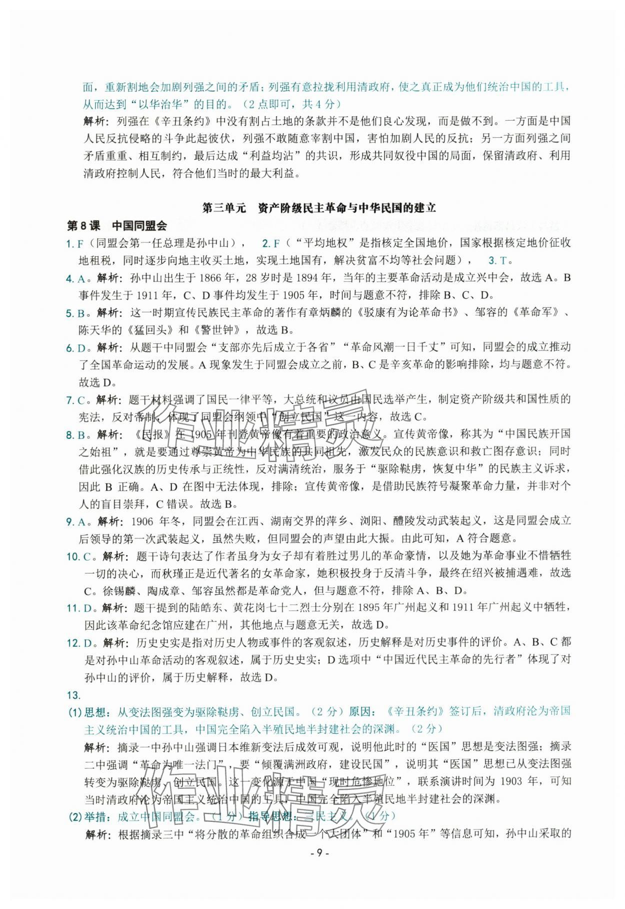 2025年练习精编八年级历史上册人教版 参考答案第9页