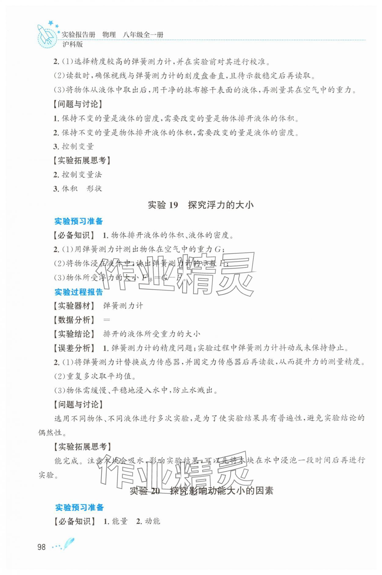 2025年实验报告册知识出版社八年级物理全一册沪科版