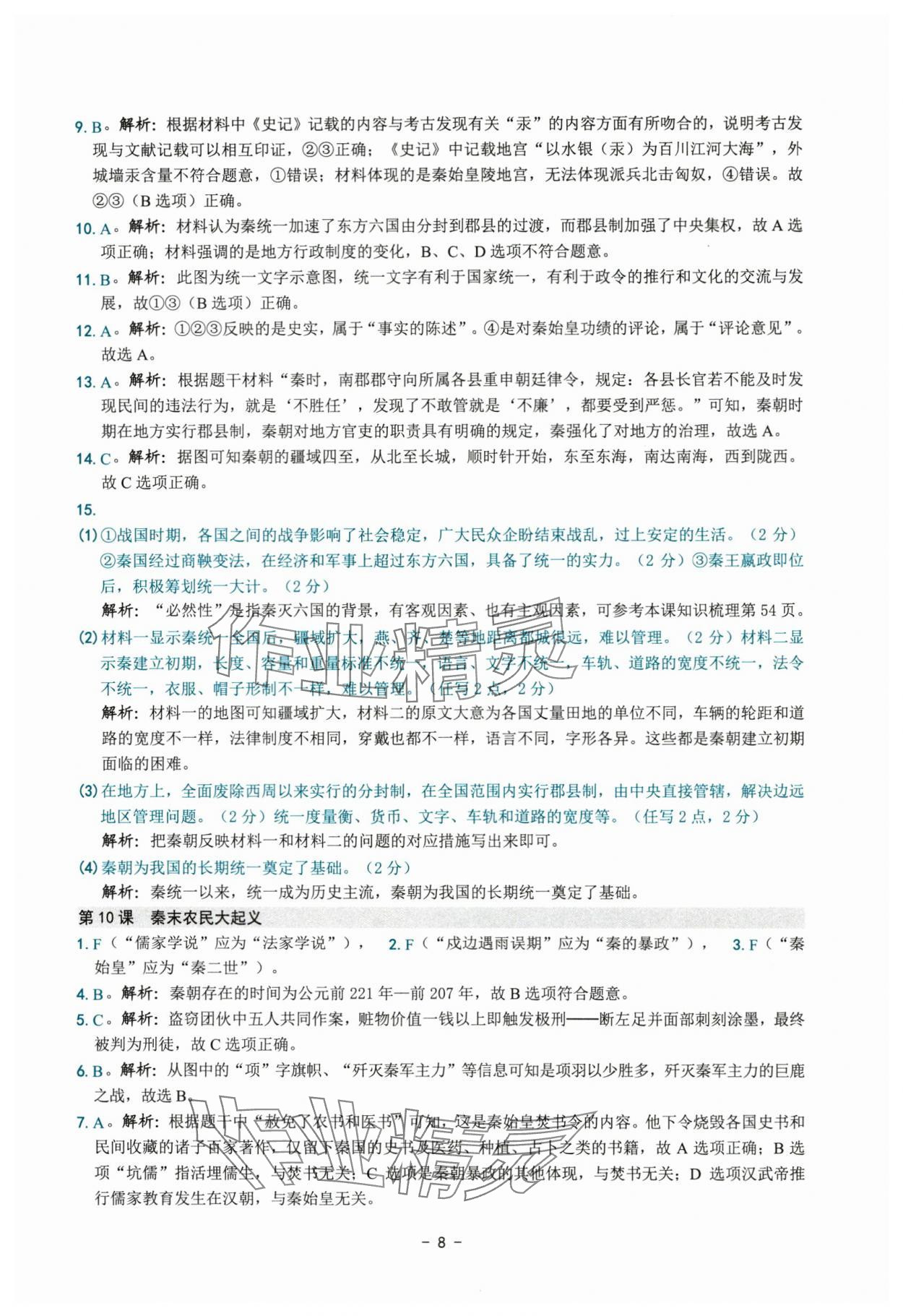 2025年练习精编七年级历史上册人教版 参考答案第8页