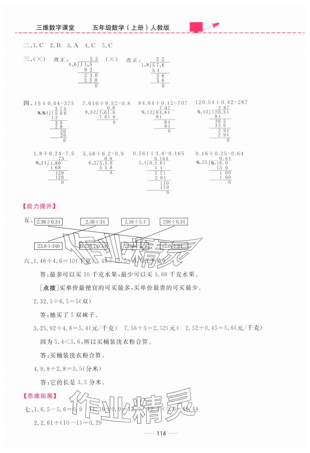 注:目前有些书本章节名称可能整理的还不是很完善,但都是按照顺序排列的,请同学们按照顺序仔细查找。练习册2025年三维数字课堂五年级数学上册人教版答案主要是用来给同学们做完题方便对答案用的,请勿直接抄袭。