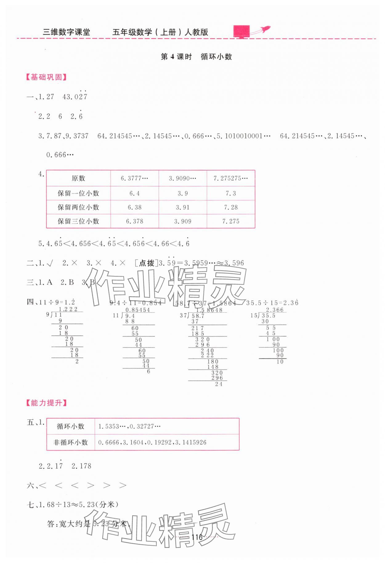 注:目前有些书本章节名称可能整理的还不是很完善,但都是按照顺序排列的,请同学们按照顺序仔细查找。练习册2025年三维数字课堂五年级数学上册人教版答案主要是用来给同学们做完题方便对答案用的,请勿直接抄袭。