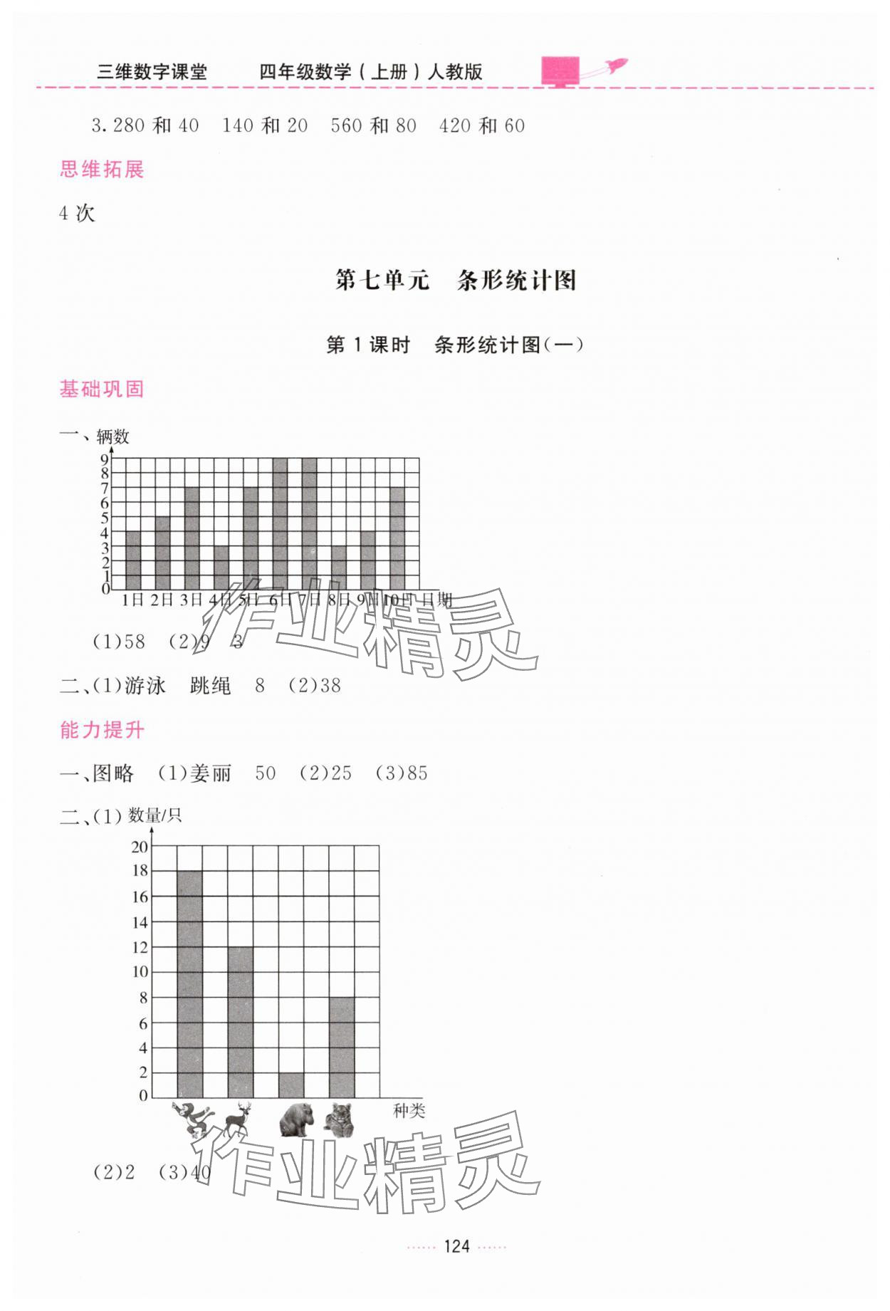 注:目前有些书本章节名称可能整理的还不是很完善,但都是按照顺序排列的,请同学们按照顺序仔细查找。练习册 2025年三维数字课堂四年级数学上册人教版 答案主要是用来给同学们做完题方便对答案用的,请勿直接抄袭。