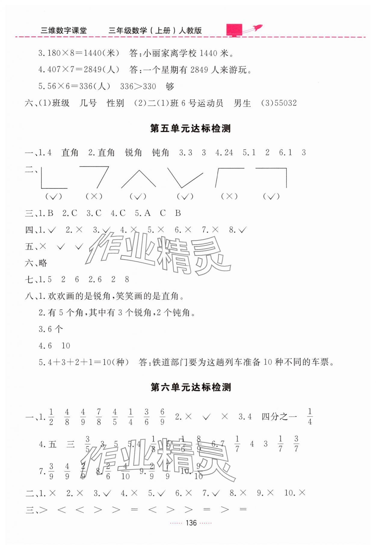 注:目前有些书本章节名称可能整理的还不是很完善,但都是按照顺序排列的,请同学们按照顺序仔细查找。练习册 2025年三维数字课堂三年级数学上册人教版 答案主要是用来给同学们做完题方便对答案用的,请勿直接抄袭。
