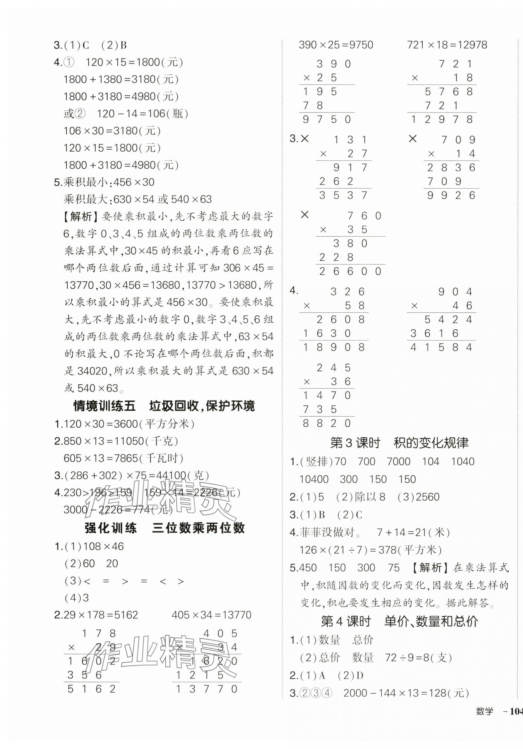 2025年状元成才路创优作业100分四年级数学上册人教版海南专版 参考答案第7页