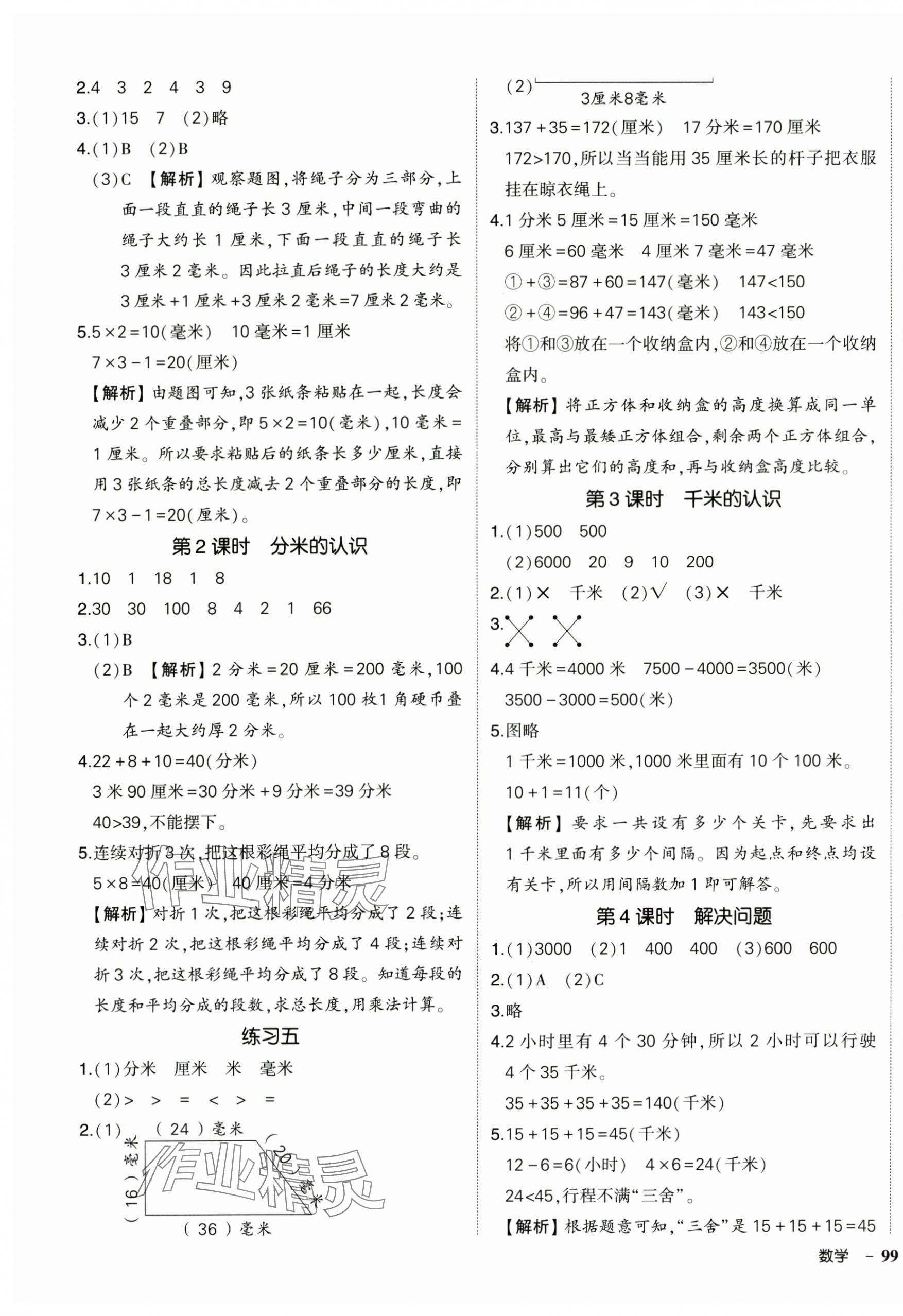 2025年状元成才路创优作业100分三年级数学上册人教版海南专版 参考答案第5页