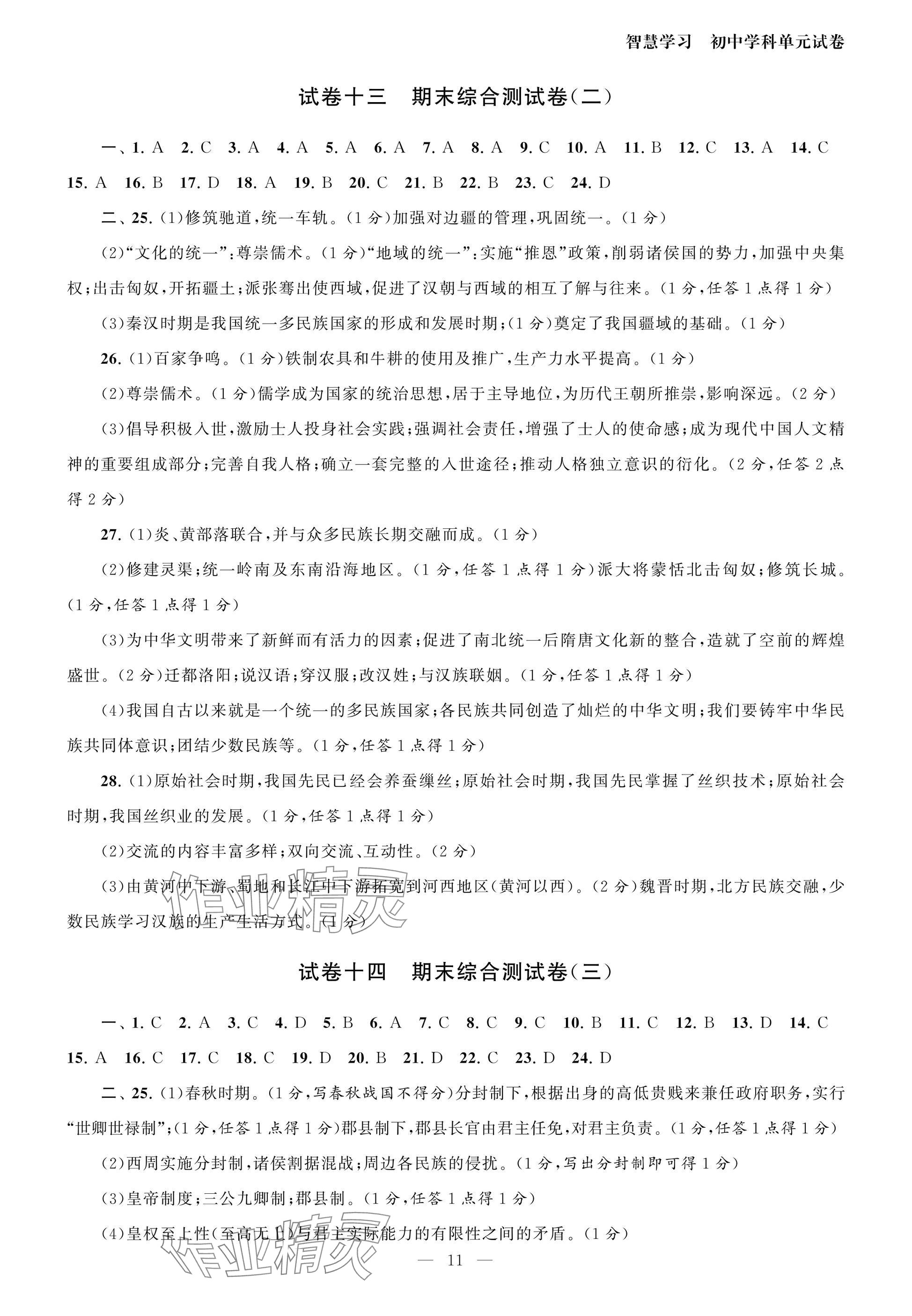 注:目前有些书本章节名称可能整理的还不是很完善,但都是按照顺序排列的,请同学们按照顺序仔细查找。练习册 2025年智慧学习初中学科单元试卷七年级历史上册人教版 答案主要是用来给同学们做完题方便对答案用的,请勿直接抄袭。
