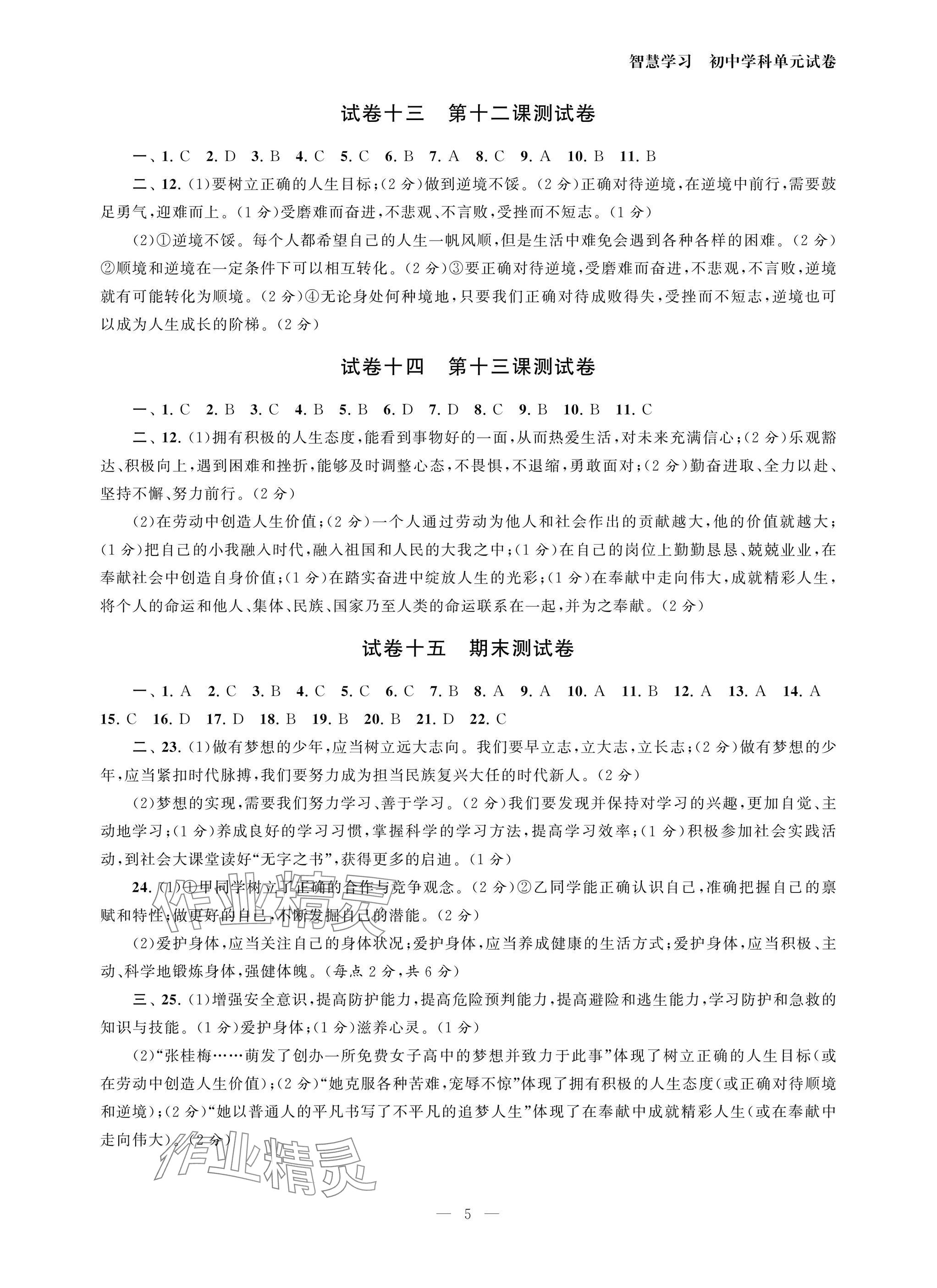 注:目前有些书本章节名称可能整理的还不是很完善,但都是按照顺序排列的,请同学们按照顺序仔细查找。练习册 2025年智慧学习初中学科单元试卷七年级道德与法治上册人教版 答案主要是用来给同学们做完题方便对答案用的,请勿直接抄袭。