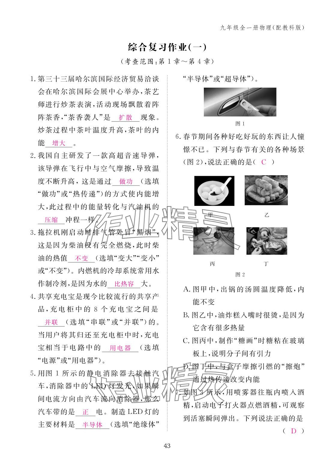 注:目前有些书本章节名称可能整理的还不是很完善,但都是按照顺序排列的,请同学们按照顺序仔细查找。练习册 2025年作业本江西教育出版社九年级物理全一册教科版 答案主要是用来给同学们做完题方便对答案用的,请勿直接抄袭。