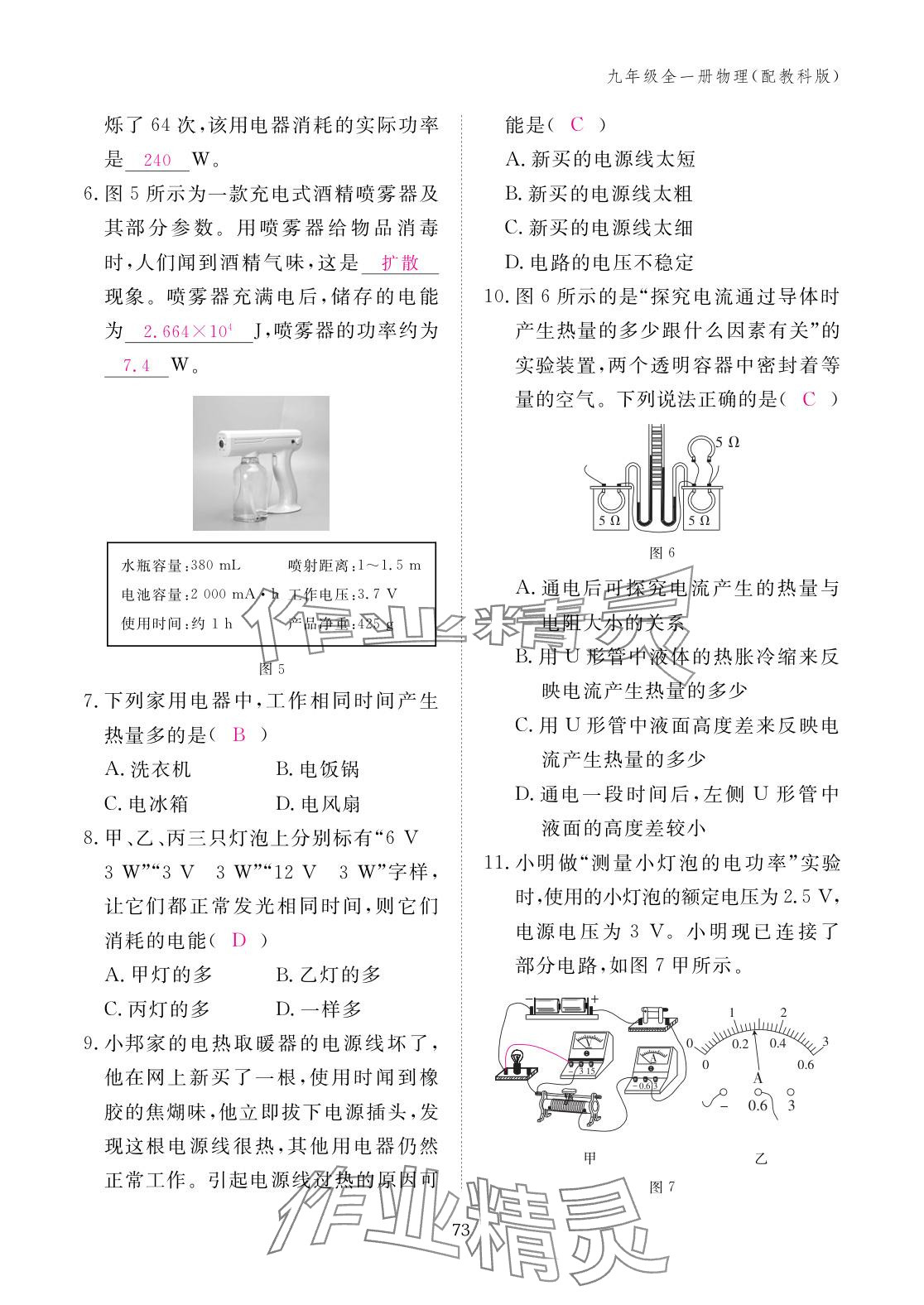 注:目前有些书本章节名称可能整理的还不是很完善,但都是按照顺序排列的,请同学们按照顺序仔细查找。练习册 2025年作业本江西教育出版社九年级物理全一册教科版 答案主要是用来给同学们做完题方便对答案用的,请勿直接抄袭。