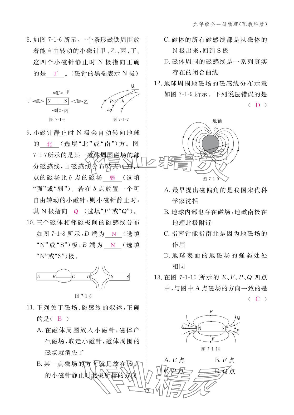 注:目前有些书本章节名称可能整理的还不是很完善,但都是按照顺序排列的,请同学们按照顺序仔细查找。练习册 2025年作业本江西教育出版社九年级物理全一册教科版 答案主要是用来给同学们做完题方便对答案用的,请勿直接抄袭。