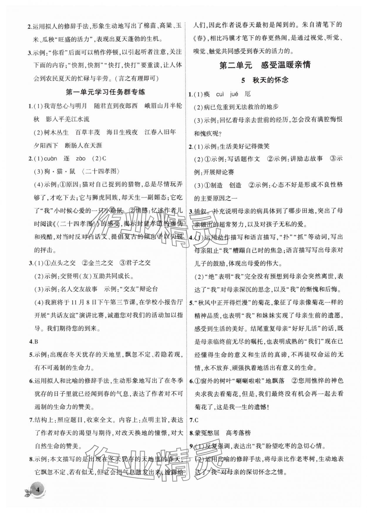 注:目前有些书本章节名称可能整理的还不是很完善,但都是按照顺序排列的,请同学们按照顺序仔细查找。练习册2025年创新课堂创新作业本七年级语文上册人教版答案主要是用来给同学们做完题方便对答案用的,请勿直接抄袭。