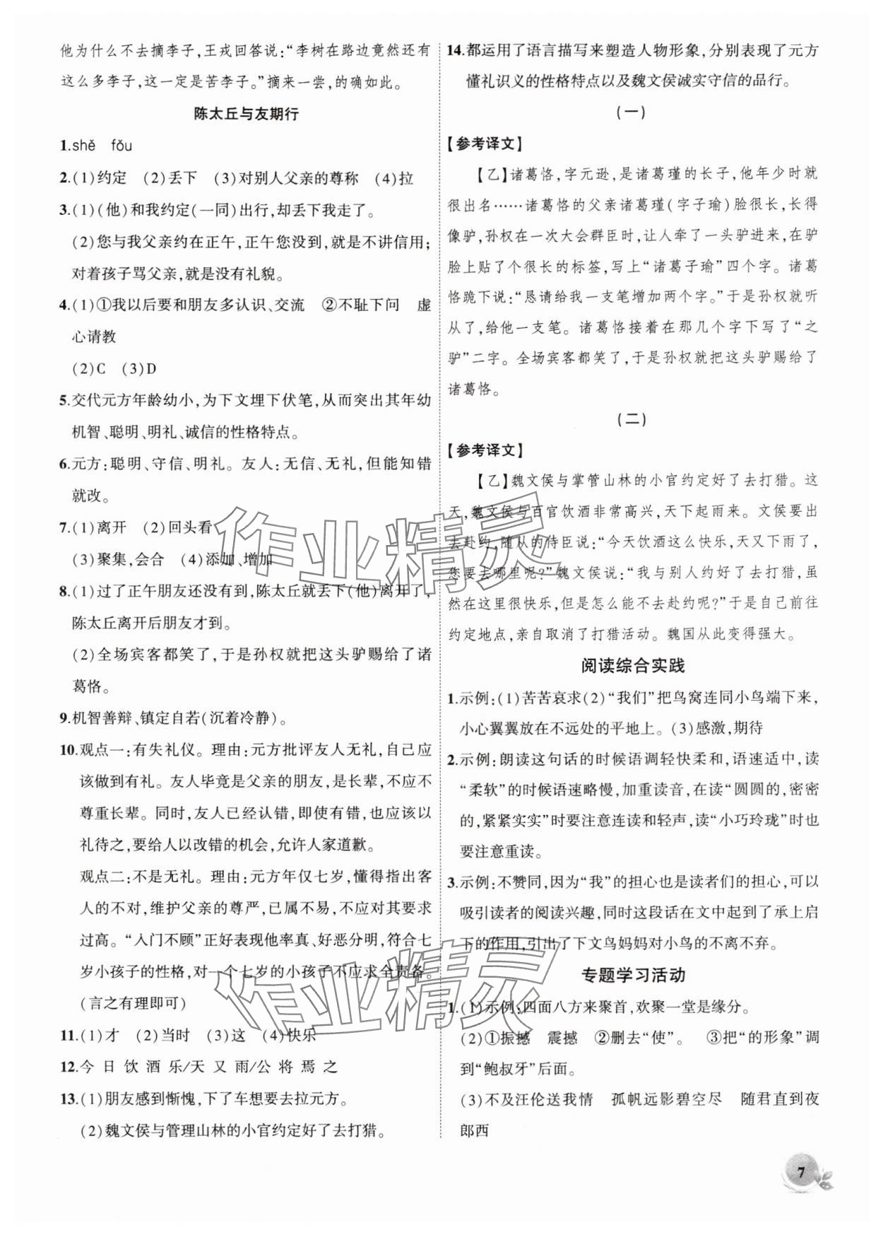 精英家教网> 2025年创新课堂创新作业本七年级语文上册人教版 > 第7页 参考答案