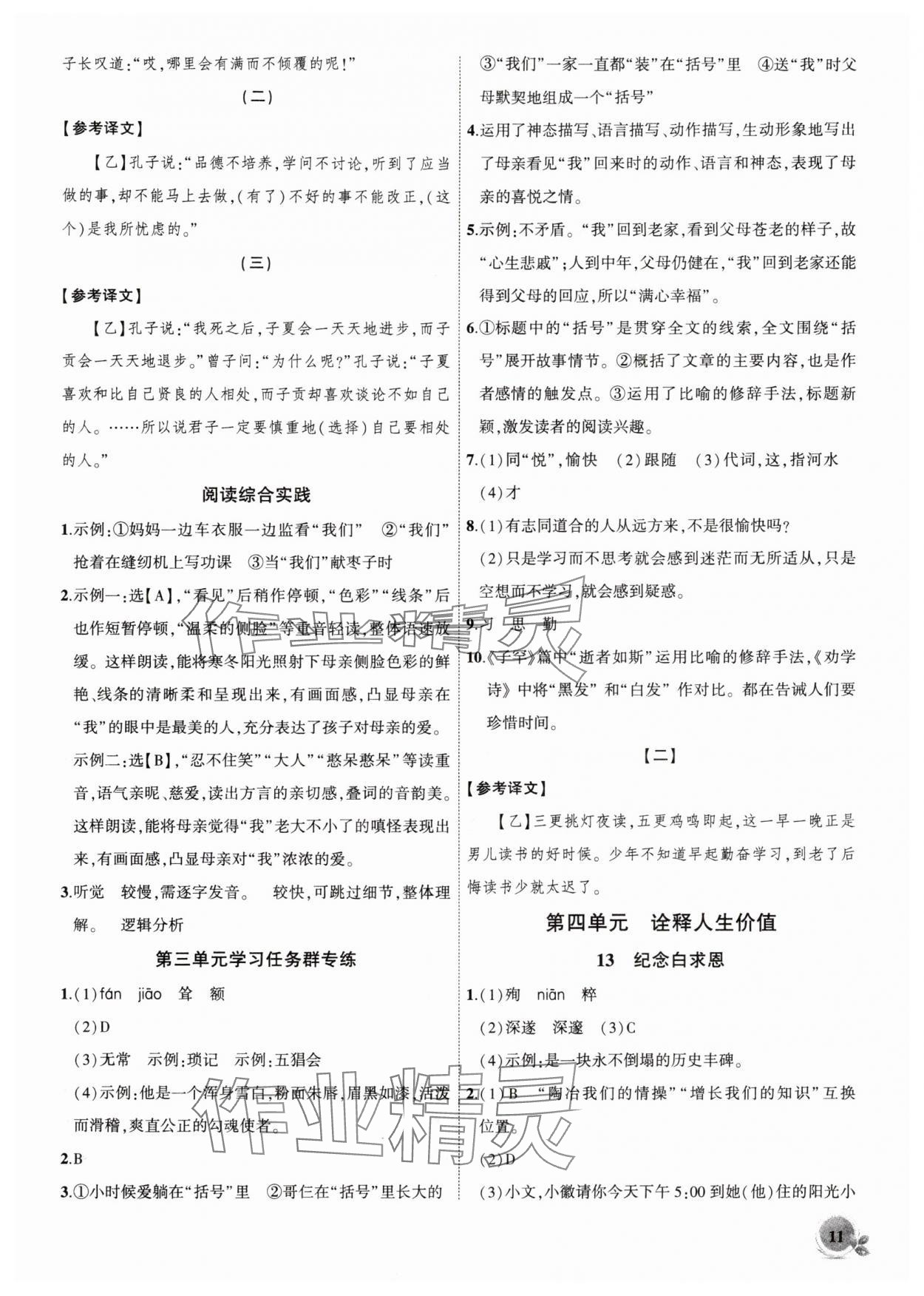 精英家教网> 2025年创新课堂创新作业本七年级语文上册人教版 > 第11页 参考答案