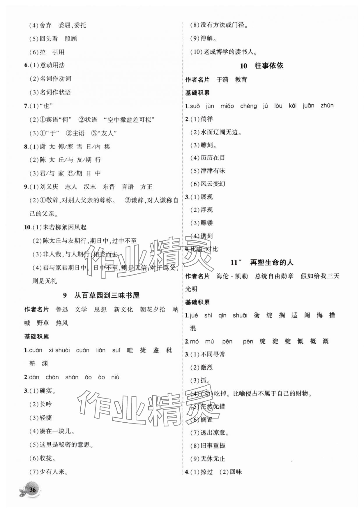 注:目前有些书本章节名称可能整理的还不是很完善,但都是按照顺序排列的,请同学们按照顺序仔细查找。练习册 2025年创新课堂创新作业本七年级语文上册人教版 答案主要是用来给同学们做完题方便对答案用的,请勿直接抄袭。