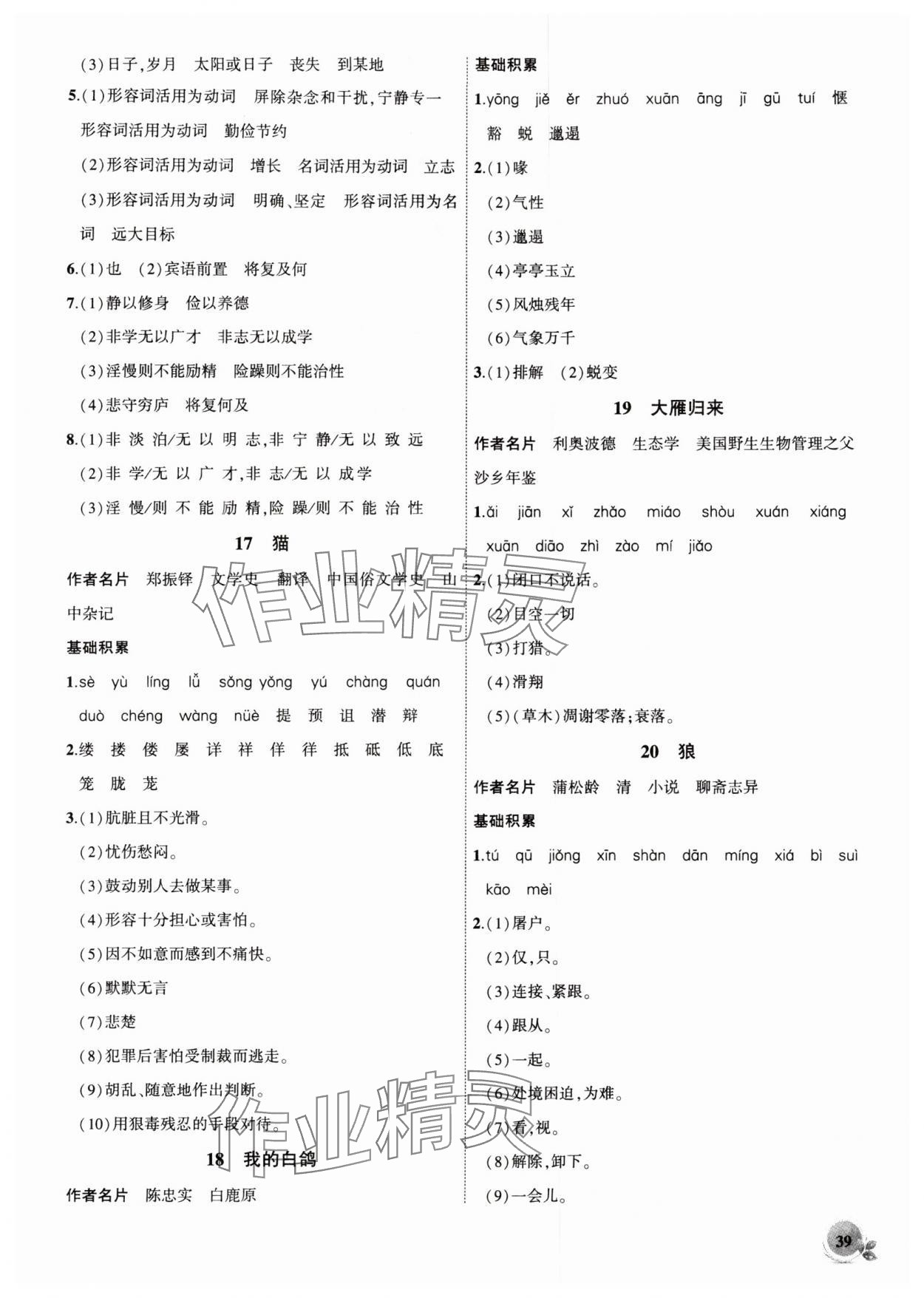 注:目前有些书本章节名称可能整理的还不是很完善,但都是按照顺序排列的,请同学们按照顺序仔细查找。练习册 2025年创新课堂创新作业本七年级语文上册人教版 答案主要是用来给同学们做完题方便对答案用的,请勿直接抄袭。