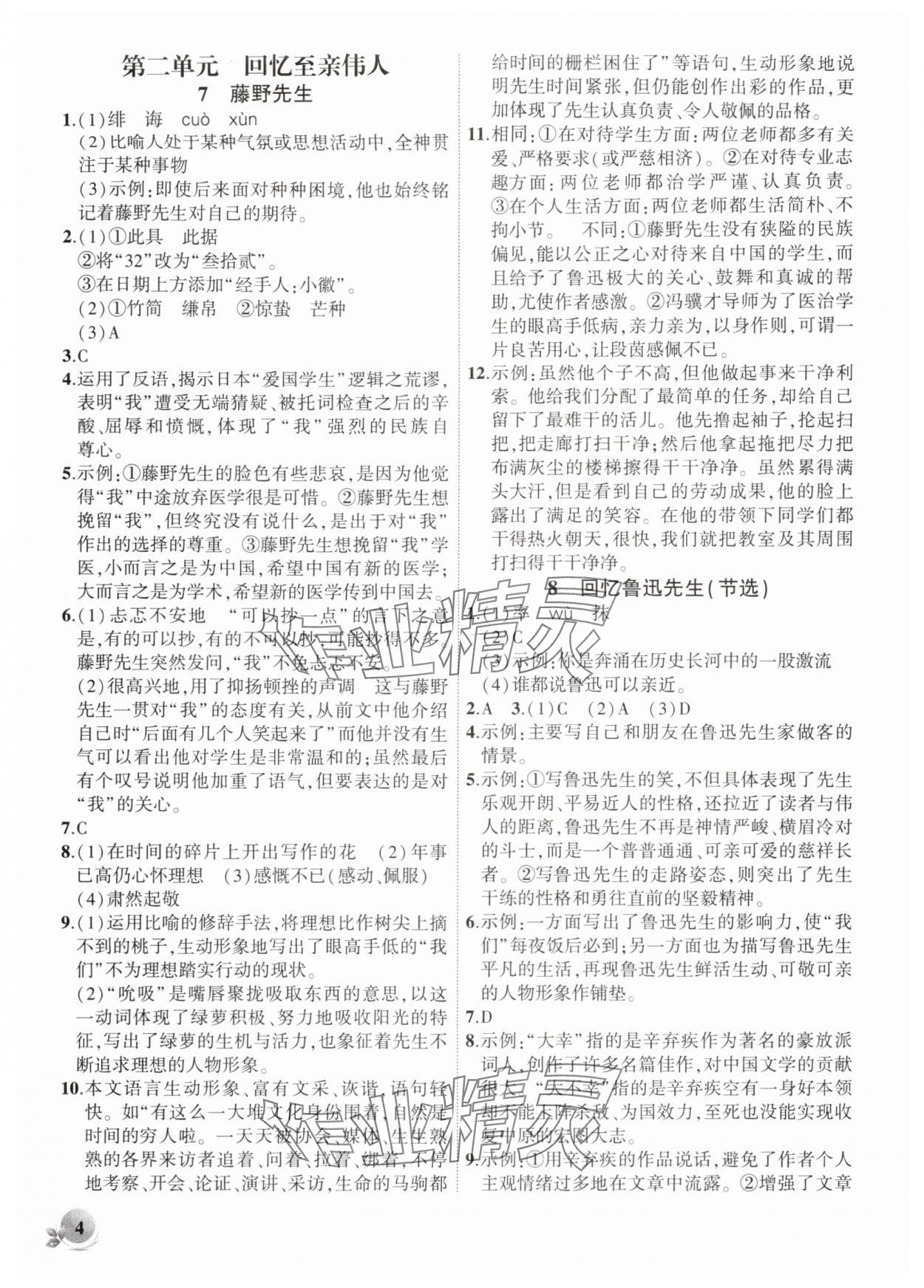 精英家教网> 2025年创新课堂创新作业本八年级语文上册人教版 > 第4页 参考答案