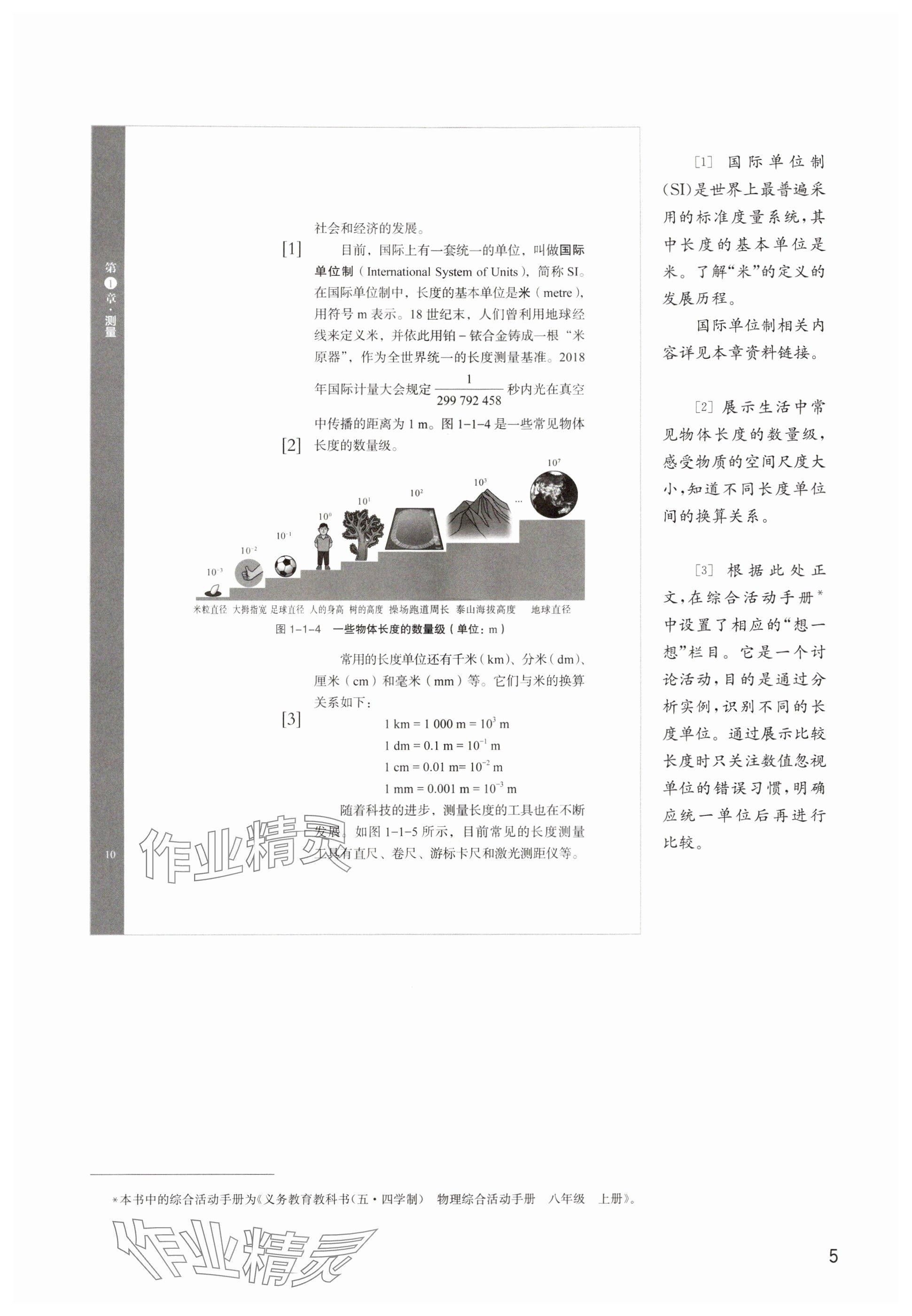 2025年教材课本八年级物理上册沪教版五四制 参考答案第5页
