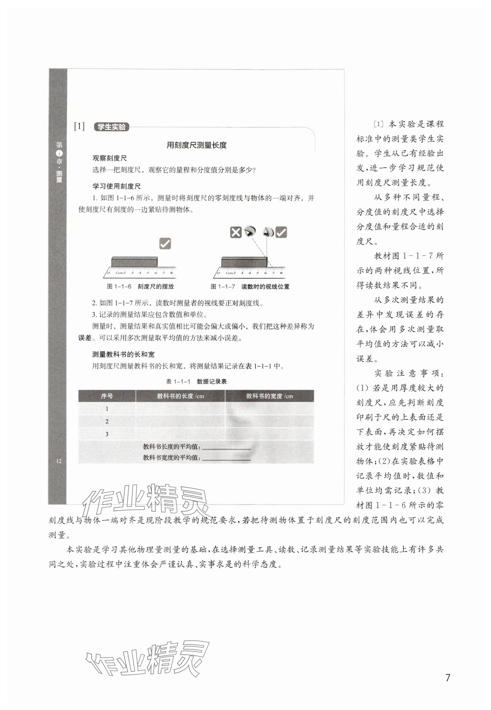 2025年教材课本八年级物理上册沪教版五四制 参考答案第7页