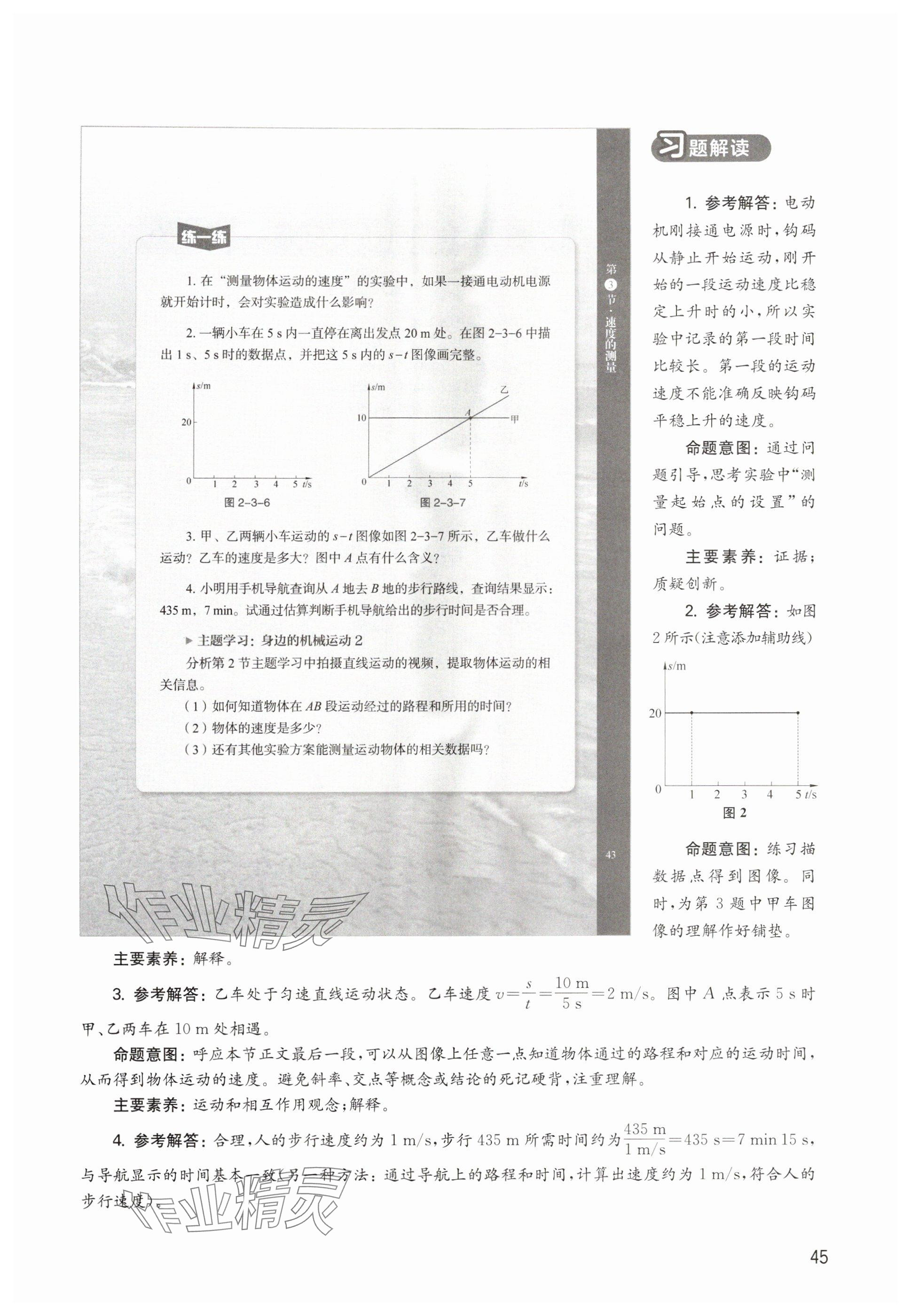 2025年教材课本八年级物理上册沪教版五四制 参考答案第45页