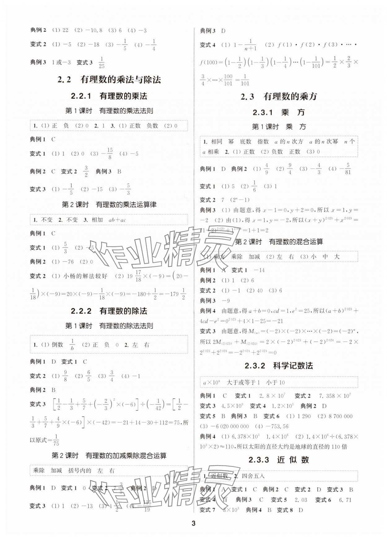 精英家教网> 2025年通成学典课时作业本七年级数学上册人教版广州专版 > 第3页 参考答案