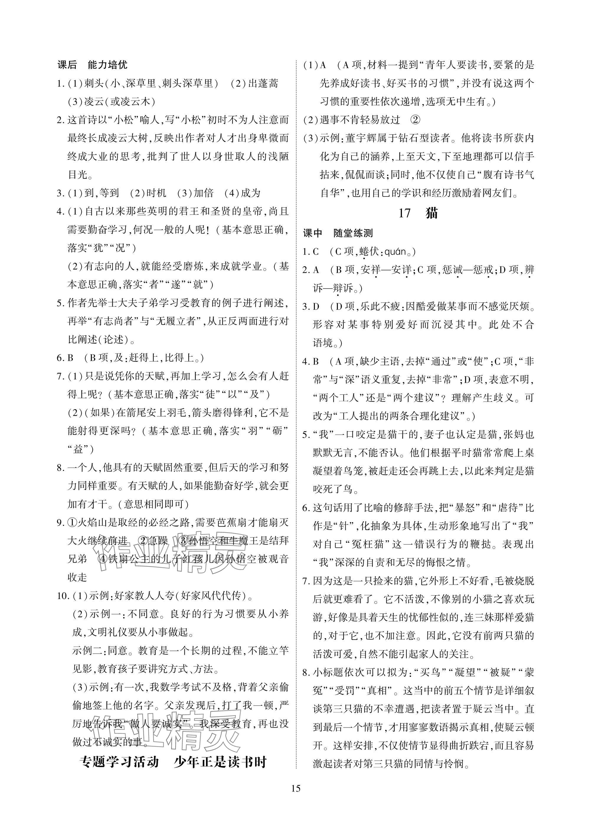 注:目前有些书本章节名称可能整理的还不是很完善,但都是按照顺序排列的,请同学们按照顺序仔细查找。练习册 2025年优课堂给力A加七年级语文上册人教版 答案主要是用来给同学们做完题方便对答案用的,请勿直接抄袭。