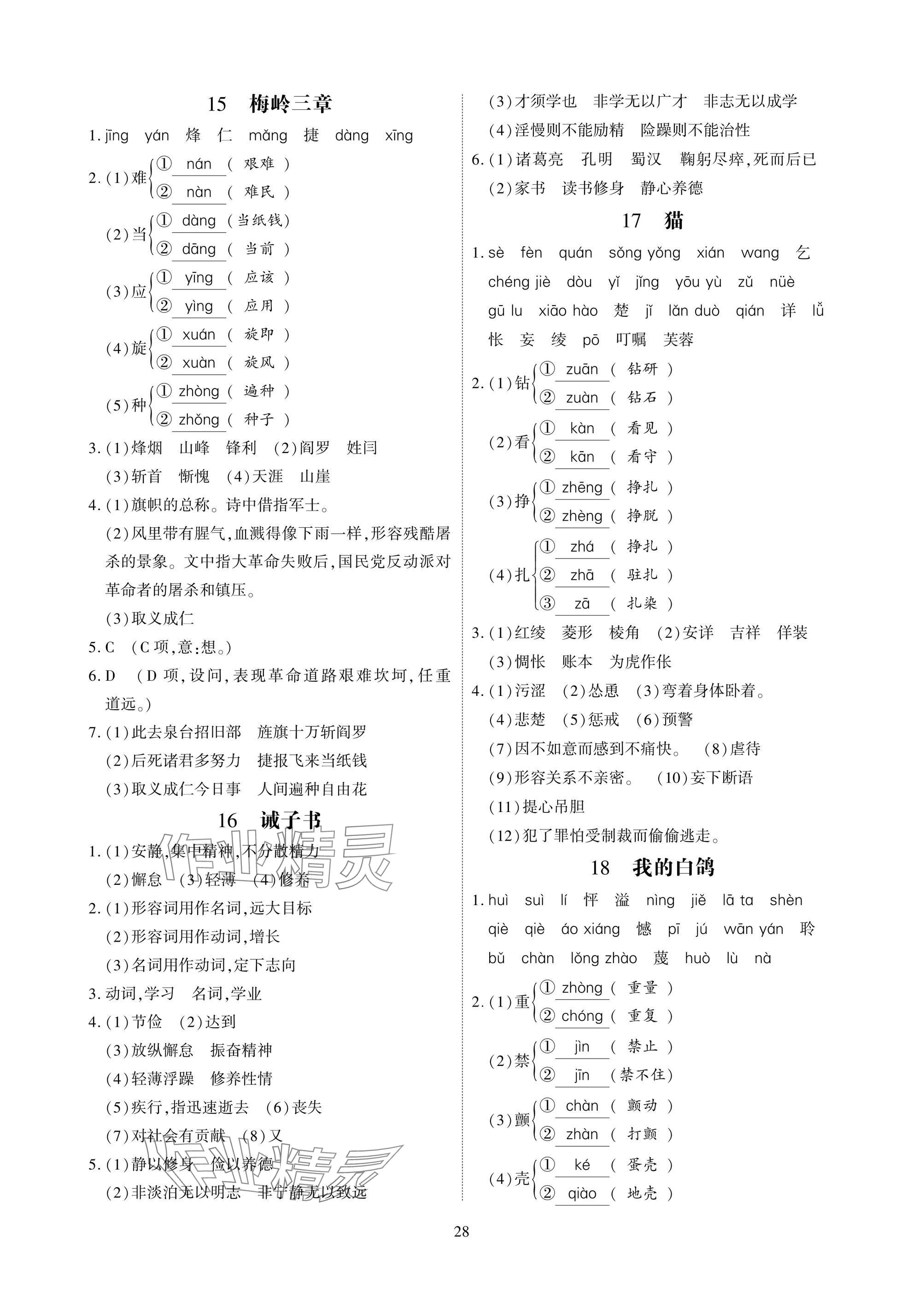注:目前有些书本章节名称可能整理的还不是很完善,但都是按照顺序排列的,请同学们按照顺序仔细查找。练习册 2025年优课堂给力A加七年级语文上册人教版 答案主要是用来给同学们做完题方便对答案用的,请勿直接抄袭。
