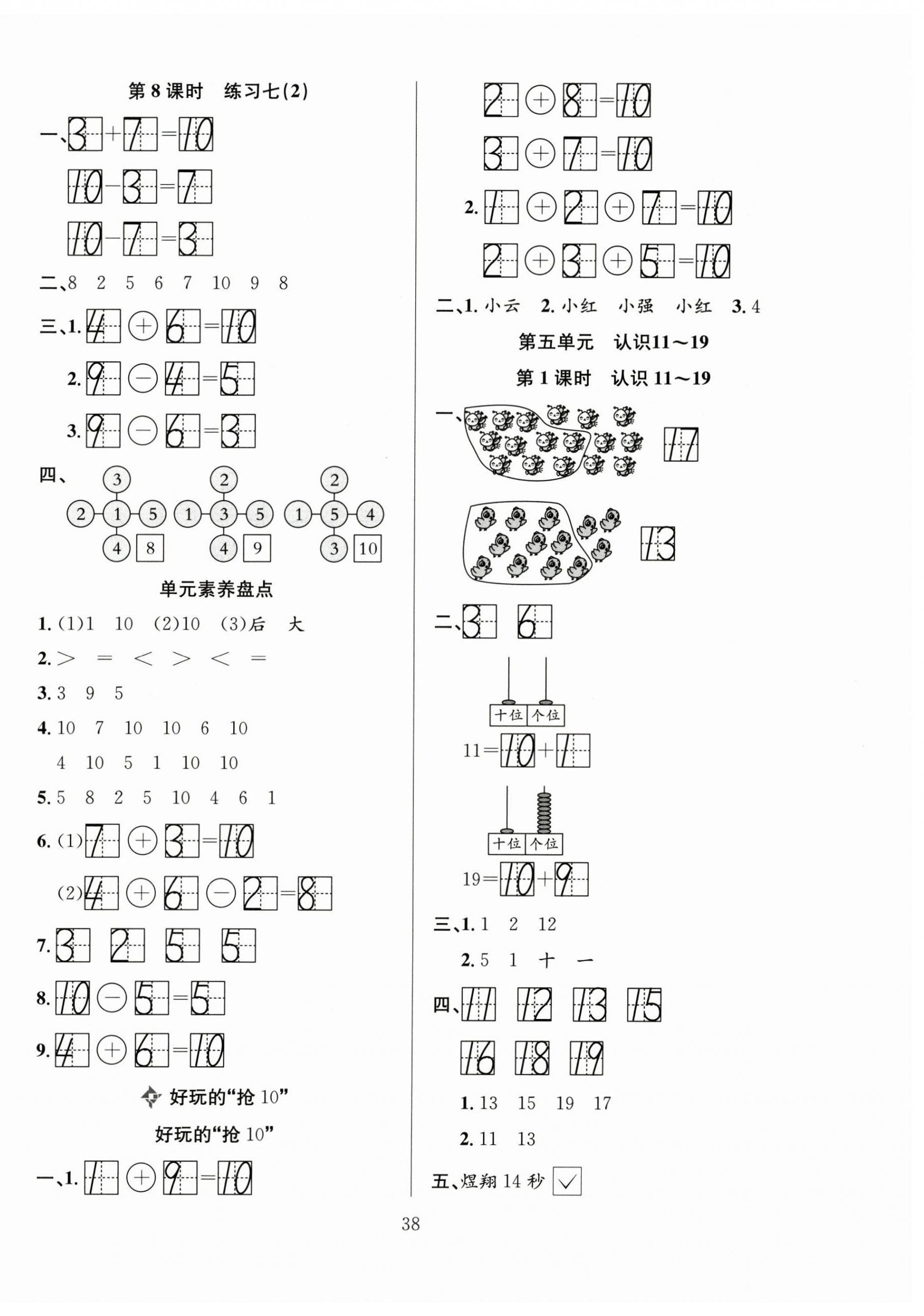 注:目前有些书本章节名称可能整理的还不是很完善,但都是按照顺序排列的,请同学们按照顺序仔细查找。练习册 2025年新经典练与测一年级数学上册苏教版 答案主要是用来给同学们做完题方便对答案用的,请勿直接抄袭。