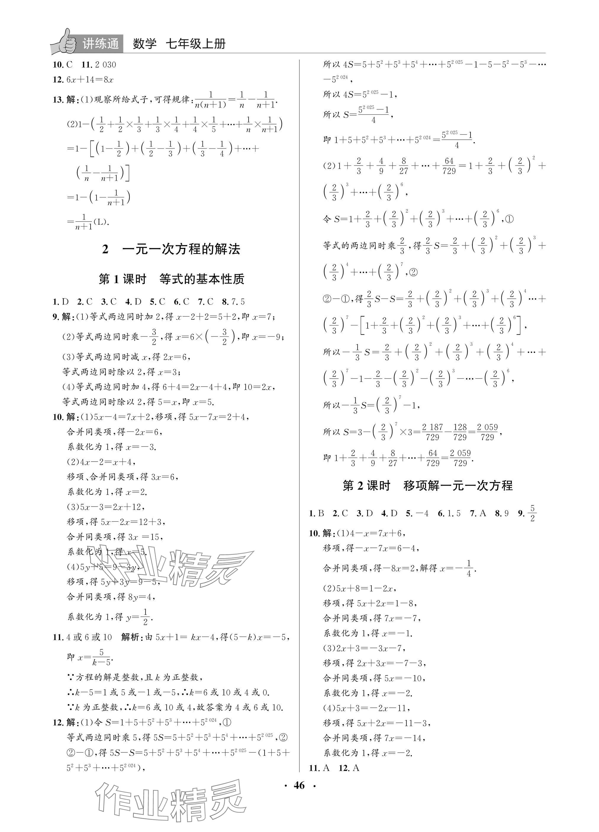 注:目前有些书本章节名称可能整理的还不是很完善,但都是按照顺序排列的,请同学们按照顺序仔细查找。练习册 2025年广东名师讲练通七年级数学上册北师大版深圳专版 答案主要是用来给同学们做完题方便对答案用的,请勿直接抄袭。