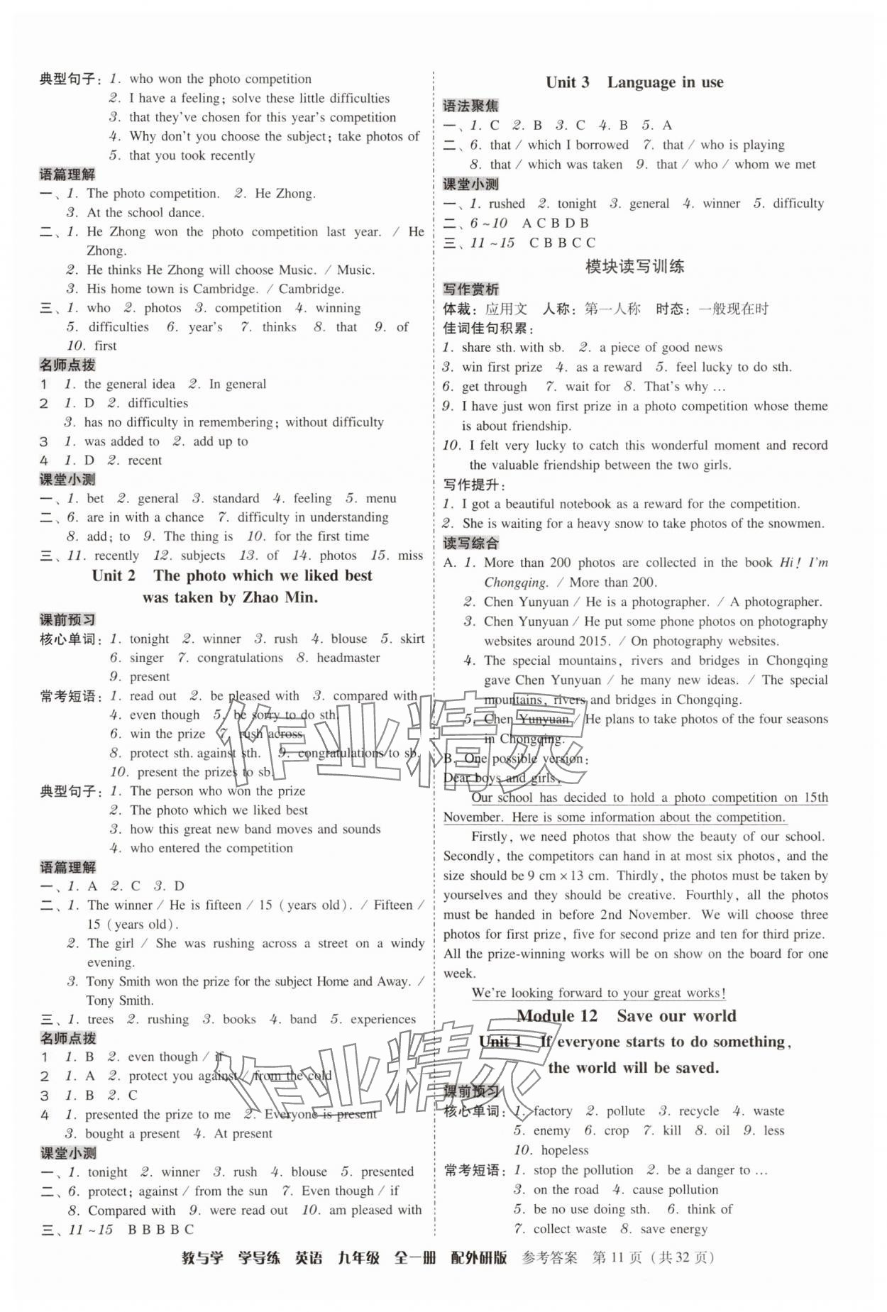 注:目前有些书本章节名称可能整理的还不是很完善,但都是按照顺序排列的,请同学们按照顺序仔细查找。练习册 2025年教与学学导练九年级英语全一册外研版 答案主要是用来给同学们做完题方便对答案用的,请勿直接抄袭。