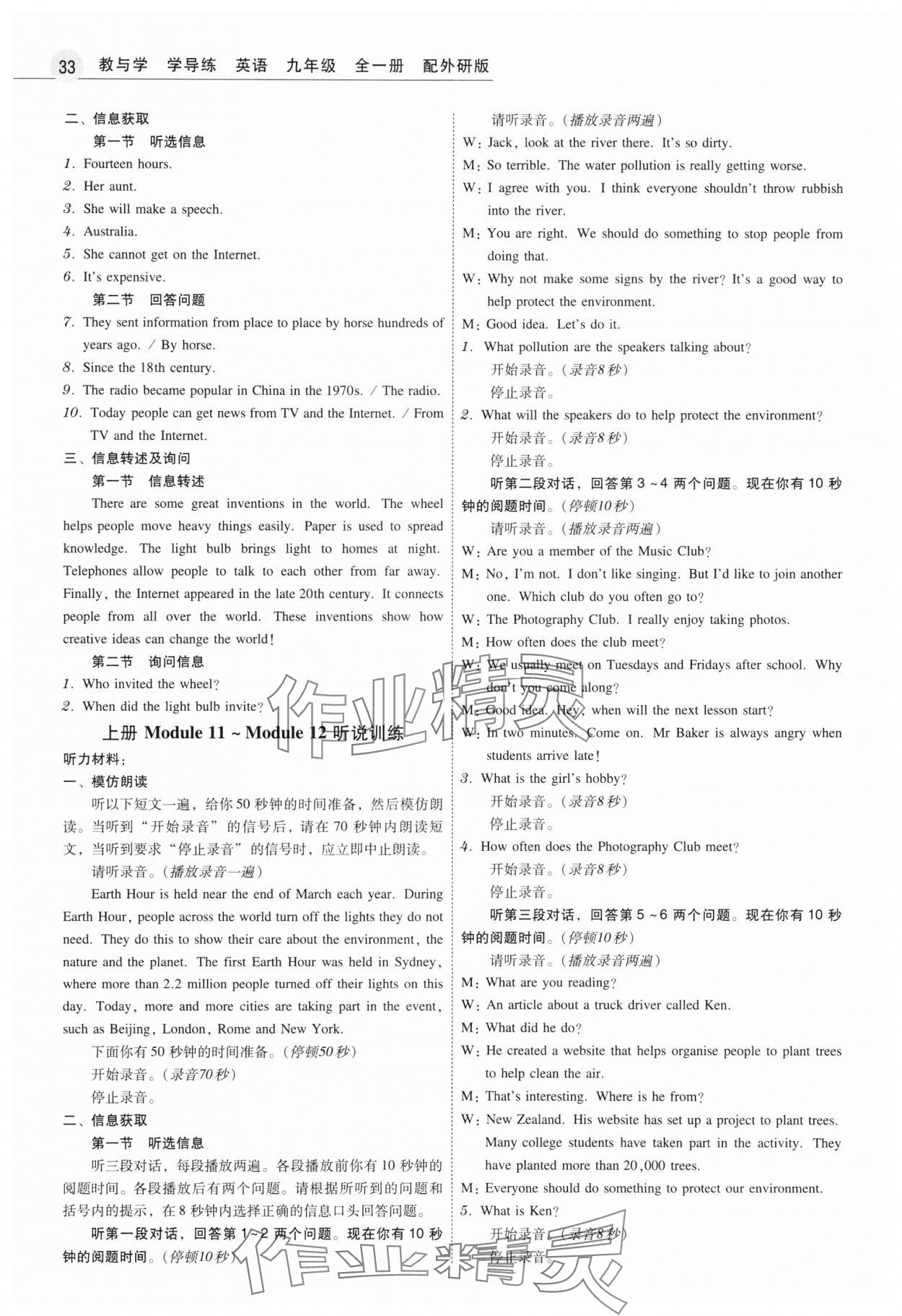 注:目前有些书本章节名称可能整理的还不是很完善,但都是按照顺序排列的,请同学们按照顺序仔细查找。练习册 2025年教与学学导练九年级英语全一册外研版 答案主要是用来给同学们做完题方便对答案用的,请勿直接抄袭。