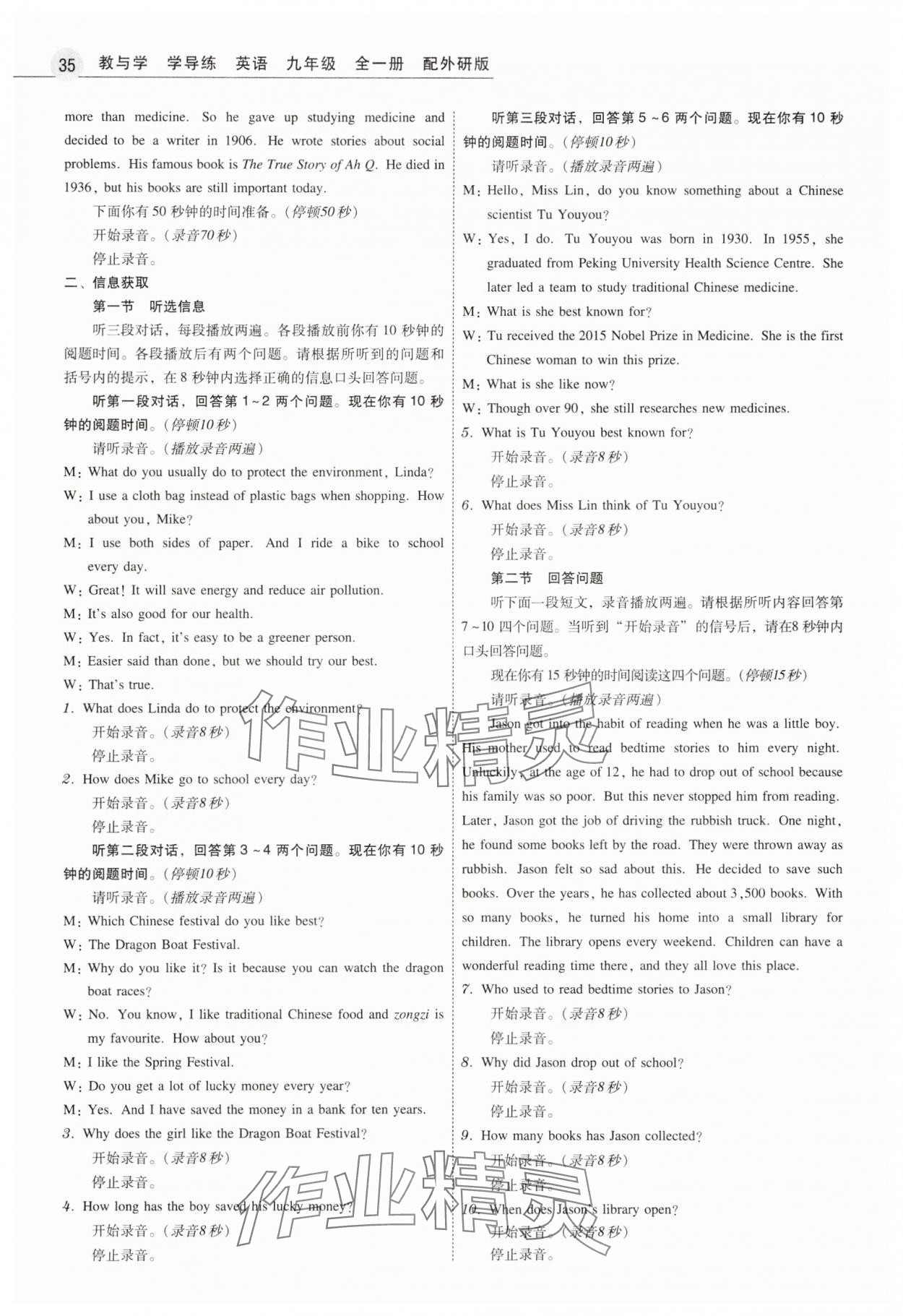 注:目前有些书本章节名称可能整理的还不是很完善,但都是按照顺序排列的,请同学们按照顺序仔细查找。练习册 2025年教与学学导练九年级英语全一册外研版 答案主要是用来给同学们做完题方便对答案用的,请勿直接抄袭。